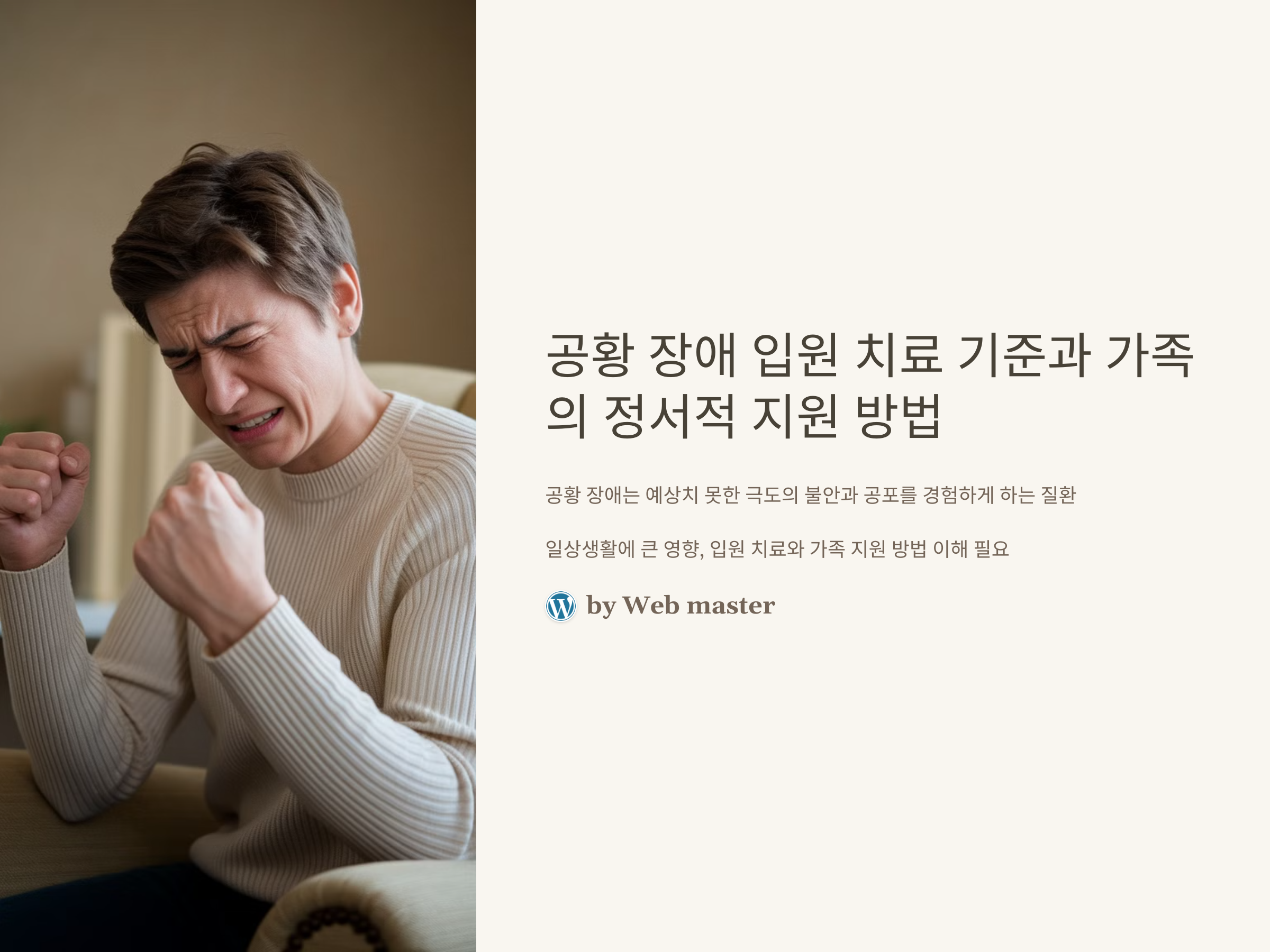 공황 장애는 예상치 못한 극도의 불안과 공포를 경험하게 하는 질환으로, 일상생활에 큰 영향을 미칠 수 있습니다. 이러한 상황에서 입원 치료가 필요한 경우와 가족이 제공할 수 있는 정서적 지원 방법에 대해 알아보겠습니다.