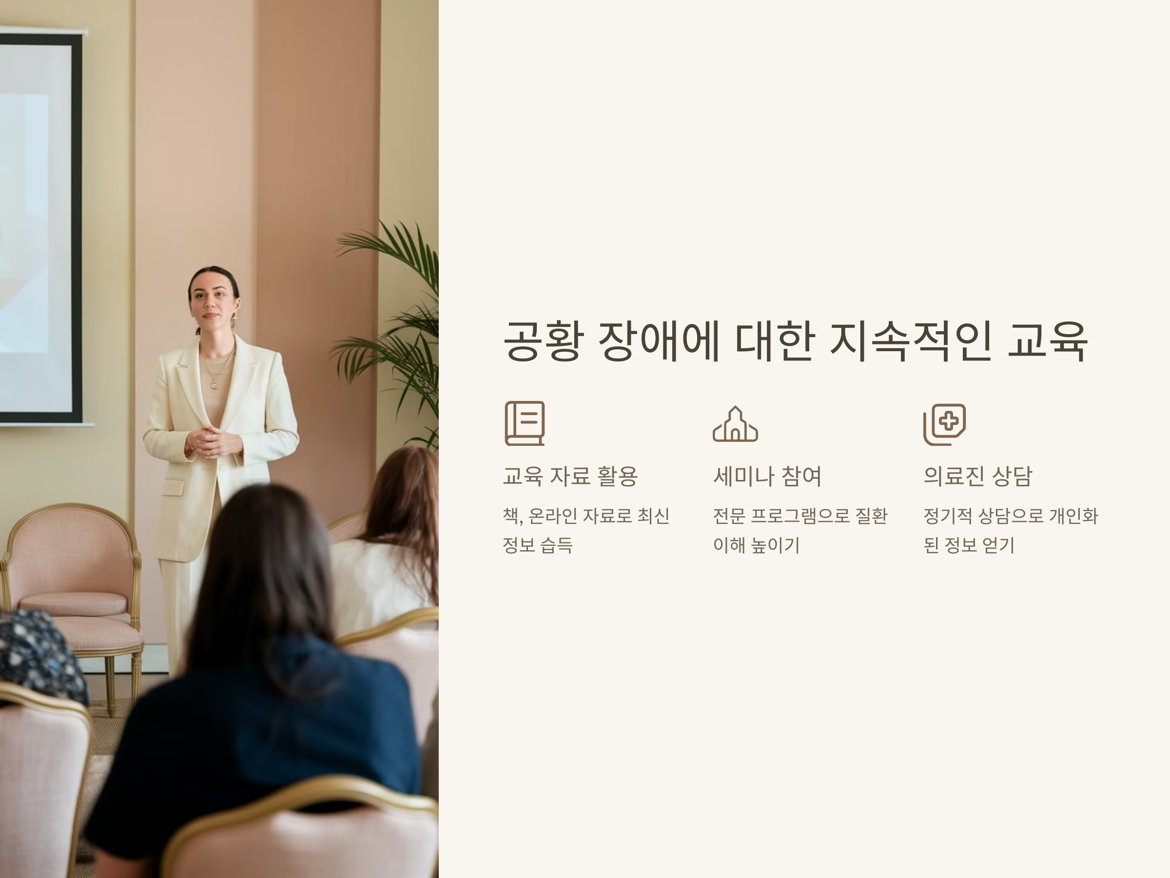 - 교육 자료 활용하기: 책, 온라인 자료 등을 통해 공황 장애에 대한 최신 정보를 습득합니다.