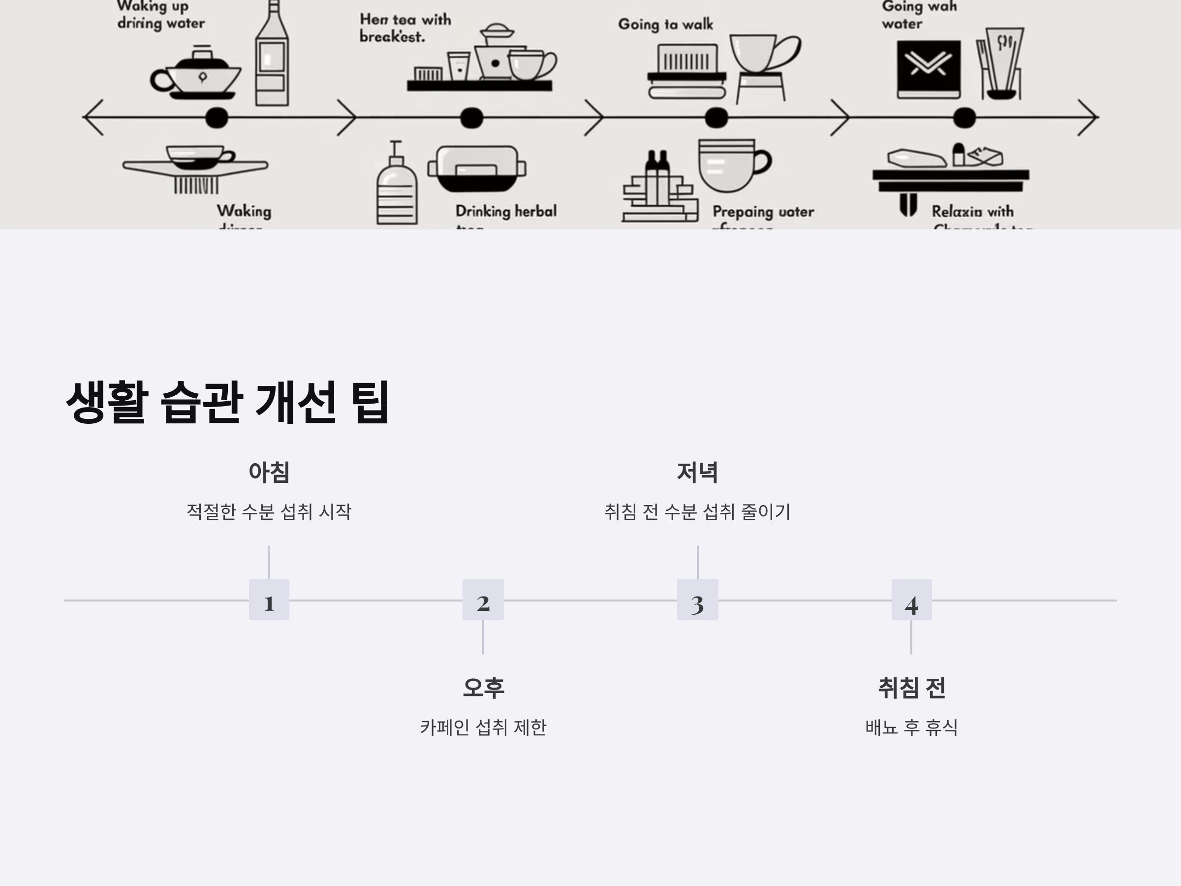 - 빈뇨: 하루에 8번 이상 화장실을 가는 경우.