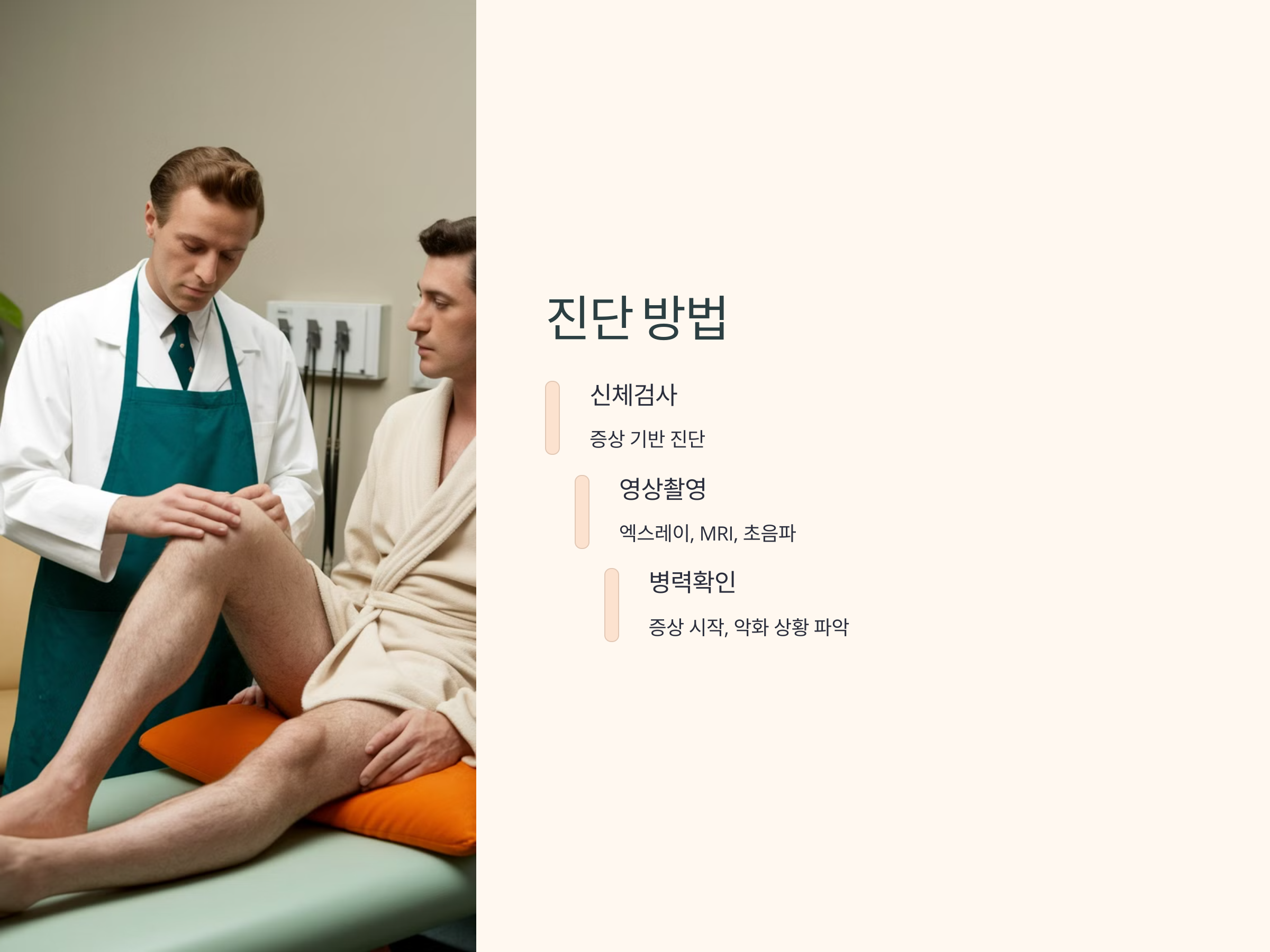 점액낭염은 주로 신체검사와 엑스레이, MRI, 초음파 등 다양한 영상 촬영을 통해 진단됩니다. 의사는 환자의 증상을 기반으로 신체검사를 진행하며, 엑스레이나 MRI를 통해 점액낭에 염증이 발생한 위치를 확인합니다. 초음파를 통해 염증 부위를 더 정확하게 확인할 수 있습니다.