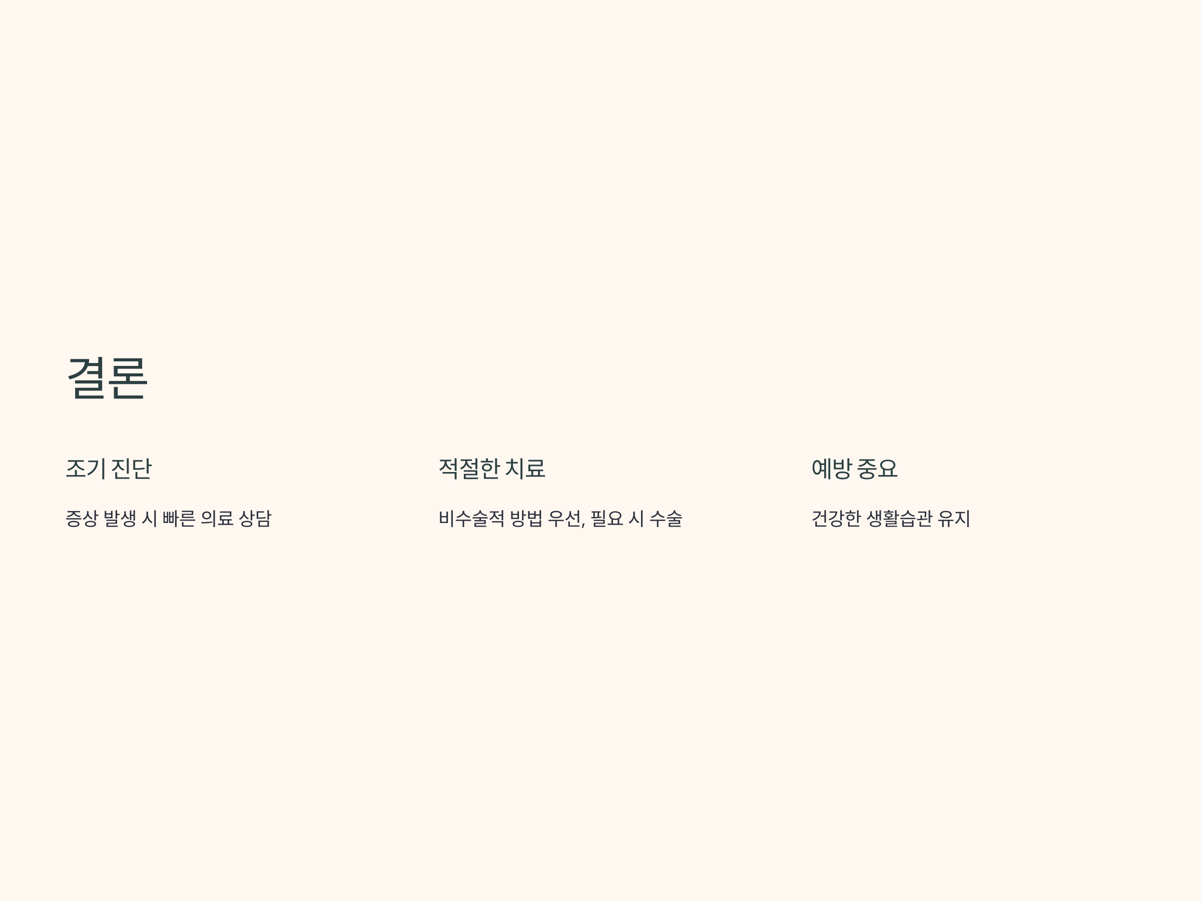 관절 점액낭염은 일상 생활에서 흔히 겪을 수 있는 질환이지만, 적절한 예방과 치료 방법을 통해 관리할 수 있습니다. 이 글을 통해 관절 점액낭염에 대해 충분히 이해하고, 예방 및 치료에 대해 알아보세요. 문제 발생 시에는 전문의와 상담하여 빠르게 대처하는 것이 중요합니다.
