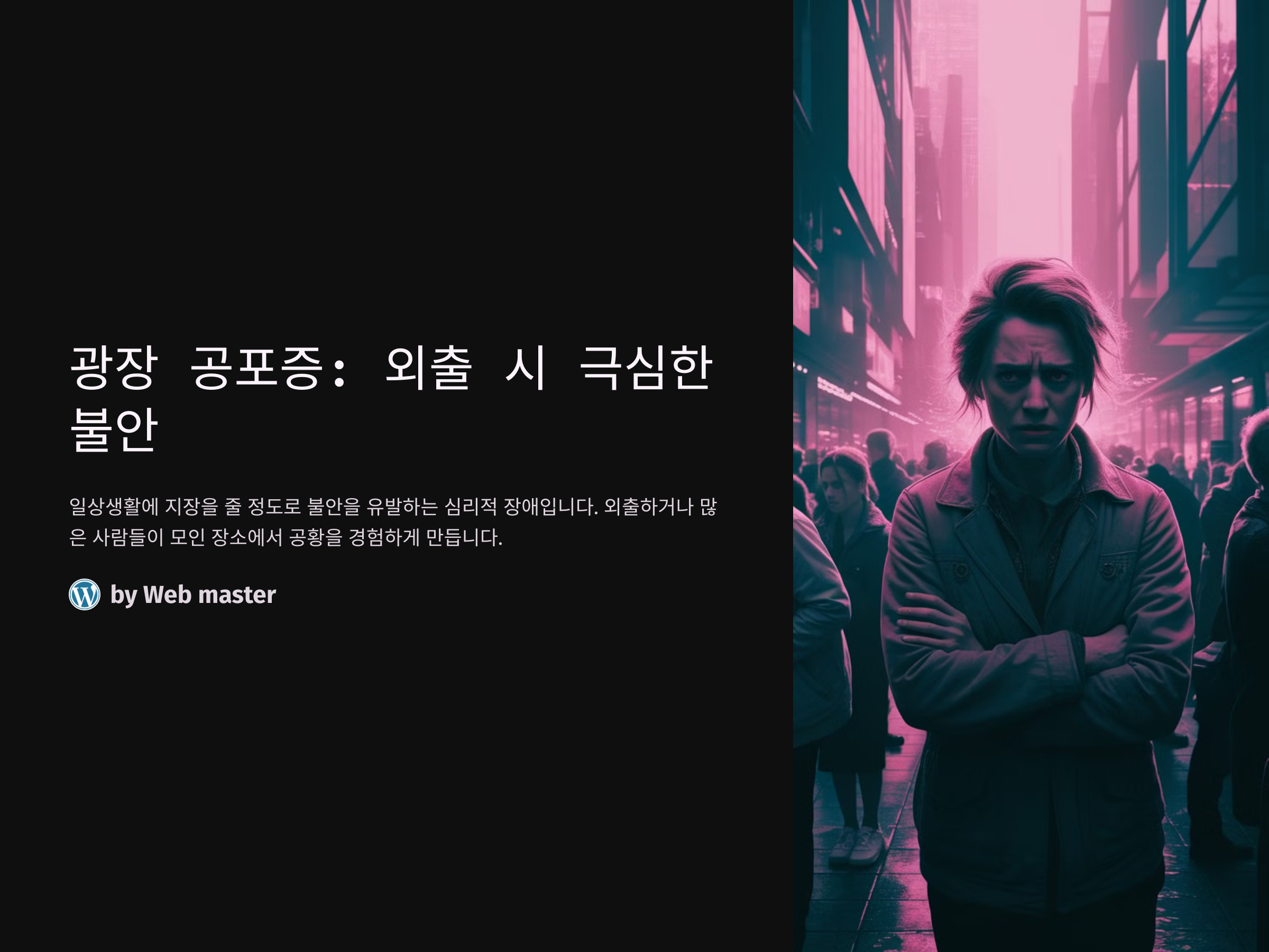 광장 공포증은 일상생활에 지장을 줄 정도로 불안을 유발하는 심리적 장애입니다. 이 장애는 외출하거나 많은 사람들이 모인 장소에서 공황을 경험하게 만듭니다. 특히 사회적 상황이나 특정 환경에서 불안감이 극심해지는 경우가 많습니다. 이러한 불안은 단순히 불편함을 넘어서, 일상생활의 질을 심각하게 저하시킬 수 있습니다. 광장 공포증을 겪는 사람들은 어떻게 이 불안을 극복할 수 있을까요? 이번 포스팅에서는 그 원인과 함께 극복 방법을 살펴보겠습니다.