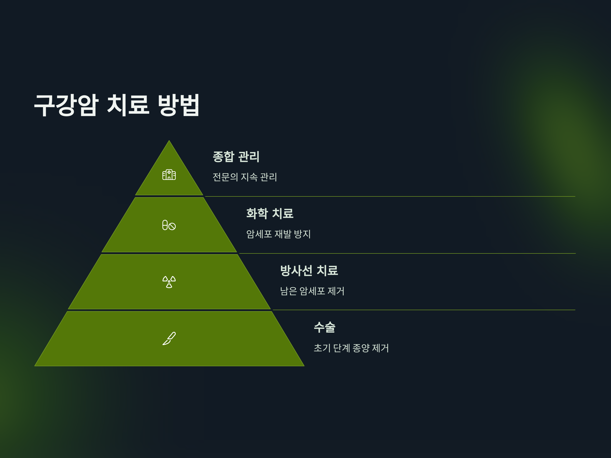 구강암은 다른 암과 마찬가지로 조기 발견이 치료의 핵심입니다. 증상이 나타났을 때 즉시 병원을 방문하여 적절한 진단과 치료를 받는 것이 중요합니다.