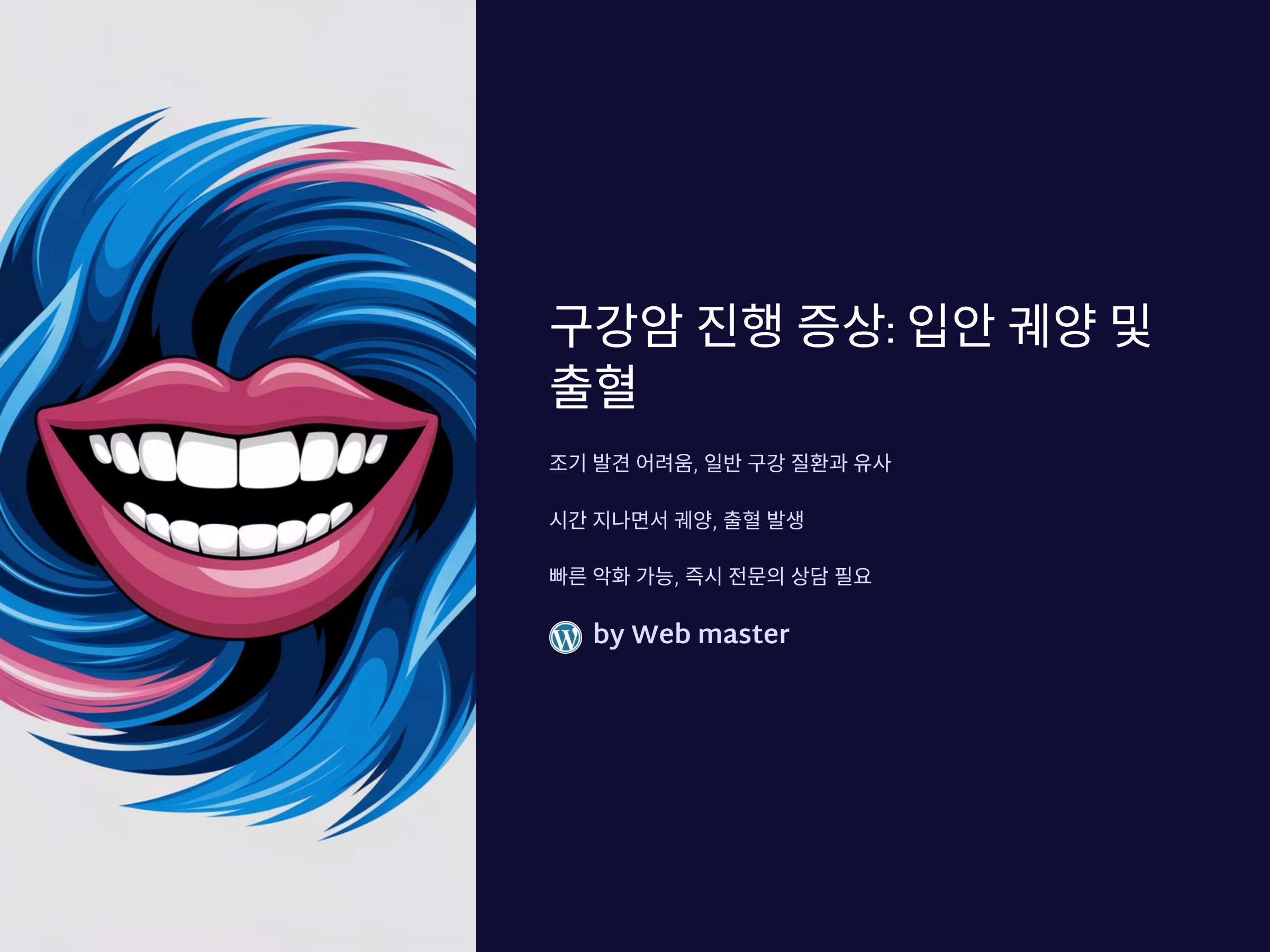 구강암은 조기에 발견하기 어렵고, 대부분의 초기 증상은 일반적인 구강 질환과 유사하여 간과되기 쉽습니다. 그러나 시간이 지나면서 입안에 궤양이 생기거나 출혈이 발생하는 등의 증상이 나타날 수 있습니다. 이런 증상들은 구강암이 진행되고 있다는 신호일 수 있습니다. 구강암은 빠르게 악화될 수 있기 때문에, 이런 증상들이 나타날 경우 즉시 전문의의 상담을 받는 것이 중요합니다. 이 글에서는 구강암의 진행 과정과 입안 궤양 및 출혈이 나타나는 이유, 그리고 이를 예방하고 관리하는 방법에 대해 자세히 살펴보겠습니다.