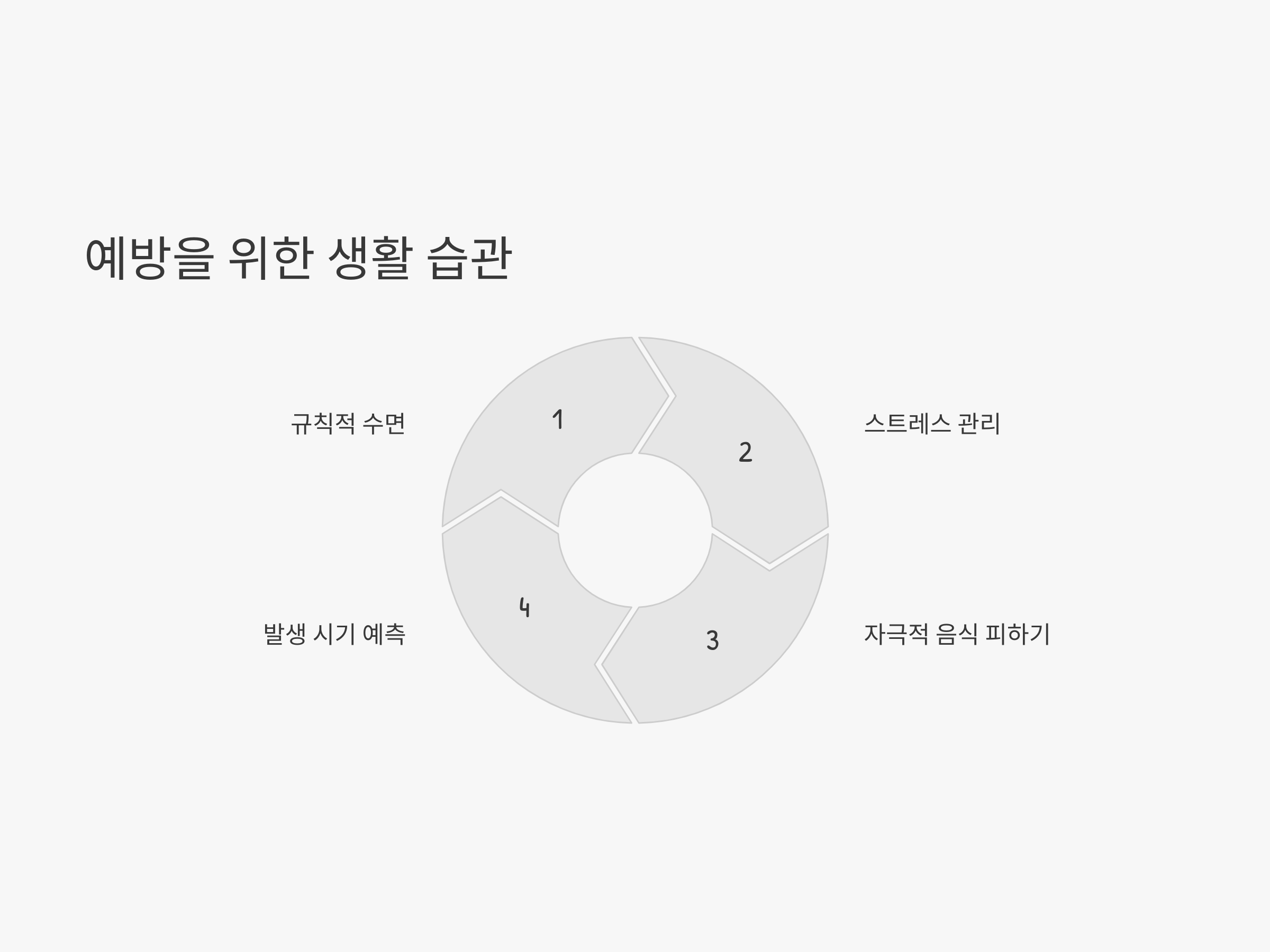 군발성 두통을 예방하기 위해서는 생활 습관을 잘 관리하는 것이 중요합니다. 가장 먼저, 규칙적인 수면 패턴을 유지하는 것이 중요합니다. 또한, 스트레스 관리와 함께 자극적인 음료나 음식을 피하는 것도 큰 도움이 됩니다. 군발성 두통이 주기적으로 발생한다면, 그 발생 시기를 예측하여 미리 예방하는 방법을 배우는 것이 중요합니다.