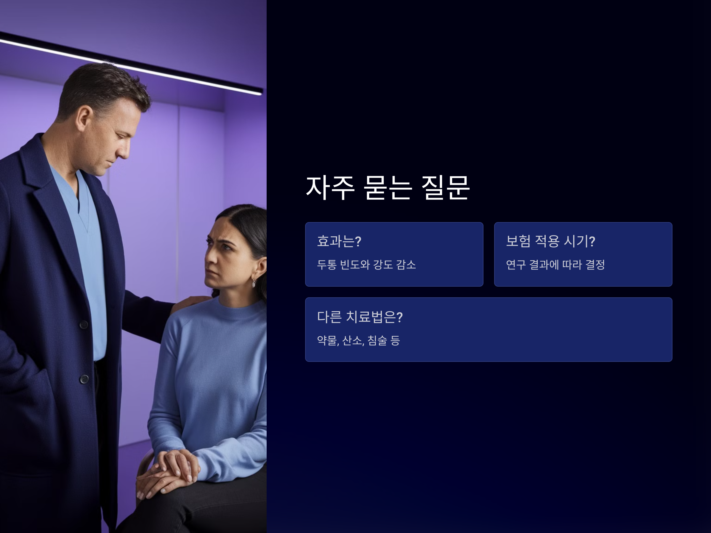 군발성 두통은 그 자체로 환자들에게 큰 고통을 안겨줍니다. 신경 자극기는 그 치료의 중요한 대안이 될 수 있으며, 향후 더 많은 연구와 데이터를 통해 효과가 입증된다면, 군발성 두통 환자들에게 더 나은 치료 방법을 제공할 수 있을 것입니다. 현재 건강보험 적용 여부에 대한 논의는 진행 중이지만, 신경 자극기의 효과가 명확하게 입증될 경우, 보험 적용이 이루어질 가능성도 높습니다.