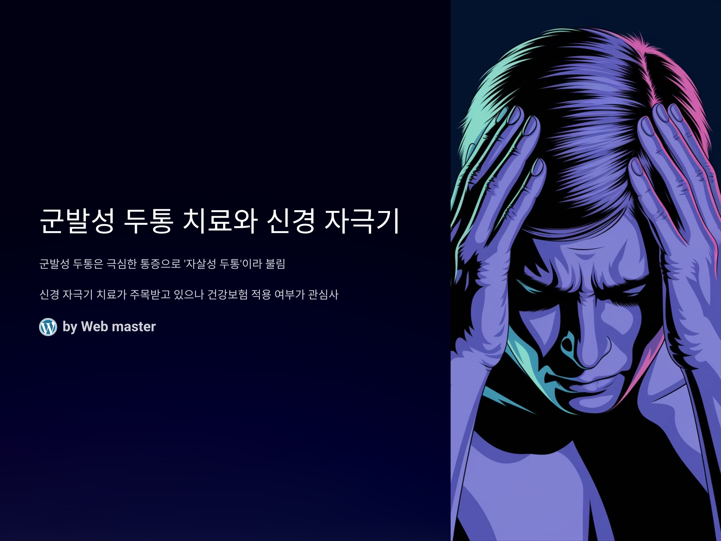 군발성 두통은 그 통증이 극심하여 "자살성 두통"이라 불리기도 합니다. 많은 사람들이 군발성 두통으로 고통받고 있으며, 이로 인해 일상적인 삶에 심각한 지장이 생깁니다. 군발성 두통을 완화하거나 치료하기 위한 다양한 방법들이 연구되고 있으며, 그 중 신경 자극기 치료가 최근 주목을 받고 있습니다. 신경 자극기는 두통을 완화하는데 효과적인 장치로 평가되지만, 이에 대한 건강보험 적용 여부는 환자들 사이에서 큰 관심사로 떠오르고 있습니다. 과연 신경 자극기는 군발성 두통 치료에서 효과를 발휘할 수 있을까요? 또한, 건강보험이 적용된다면 환자들에게 얼마나 큰 도움이 될까요?