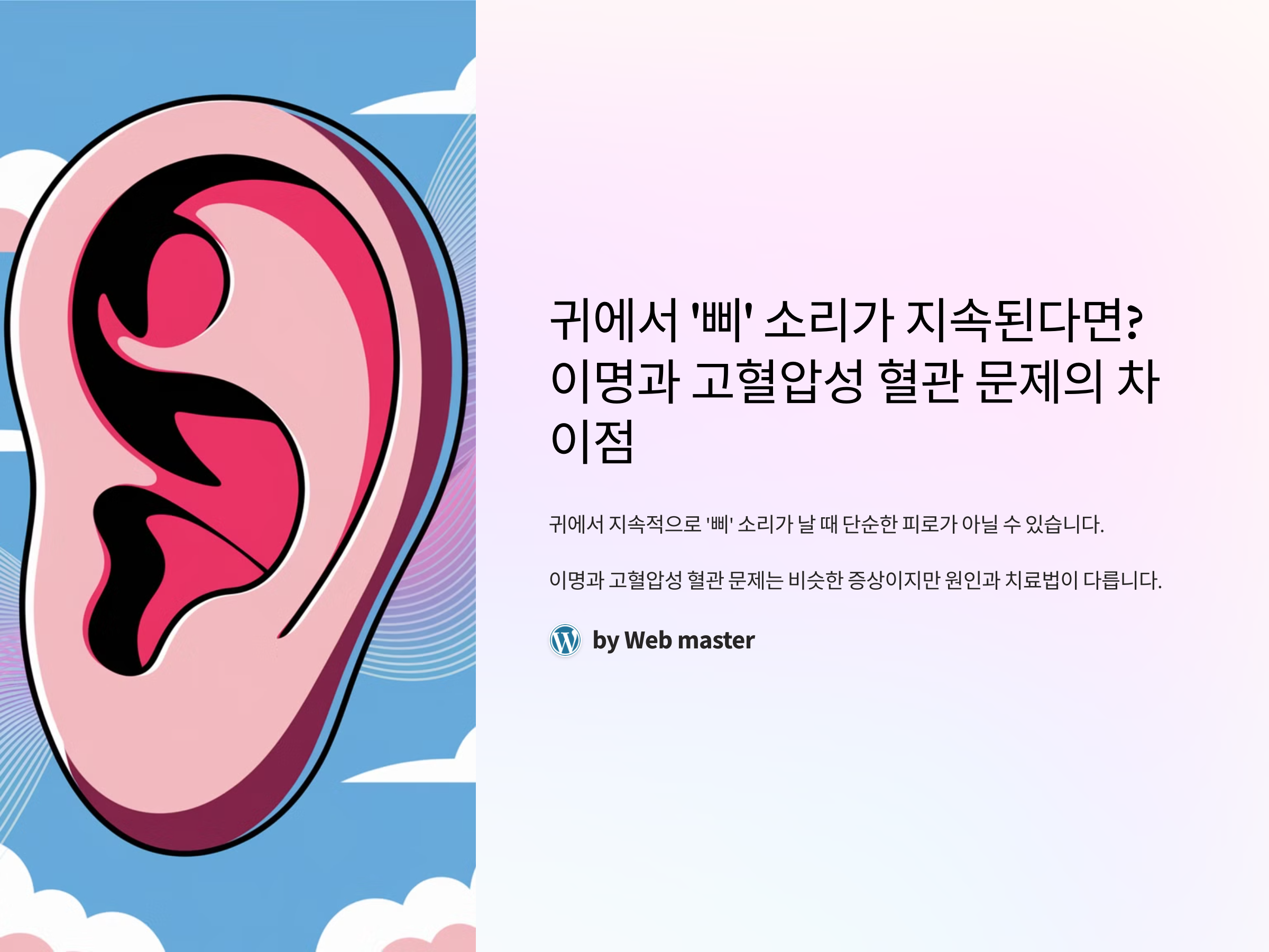 이명은 귀에서 소리가 들리지 않지만 소리가 나는 것 같은 느낌을 주는 증상입니다. 귀에서 지속적으로 '삐' 소리가 난다면, 많은 사람들이 처음에는 단순한 피로 탓이라고 생각할 수 있지만, 이는 단순한 증상이 아닐 수 있습니다. 귀의 소리 문제가 발생하는 원인 중 두 가지 중요한 요인은 바로 '이명'과 '고혈압성 혈관 문제'입니다. 이 두 가지는 외형상 비슷한 증상을 보이기도 하지만, 원인과 치료법에서 큰 차이를 보입니다. 이 포스트에서는 이명과 고혈압성 혈관 문제를 비교하며 각 원인과 증상, 치료법에 대해 알아보겠습니다.