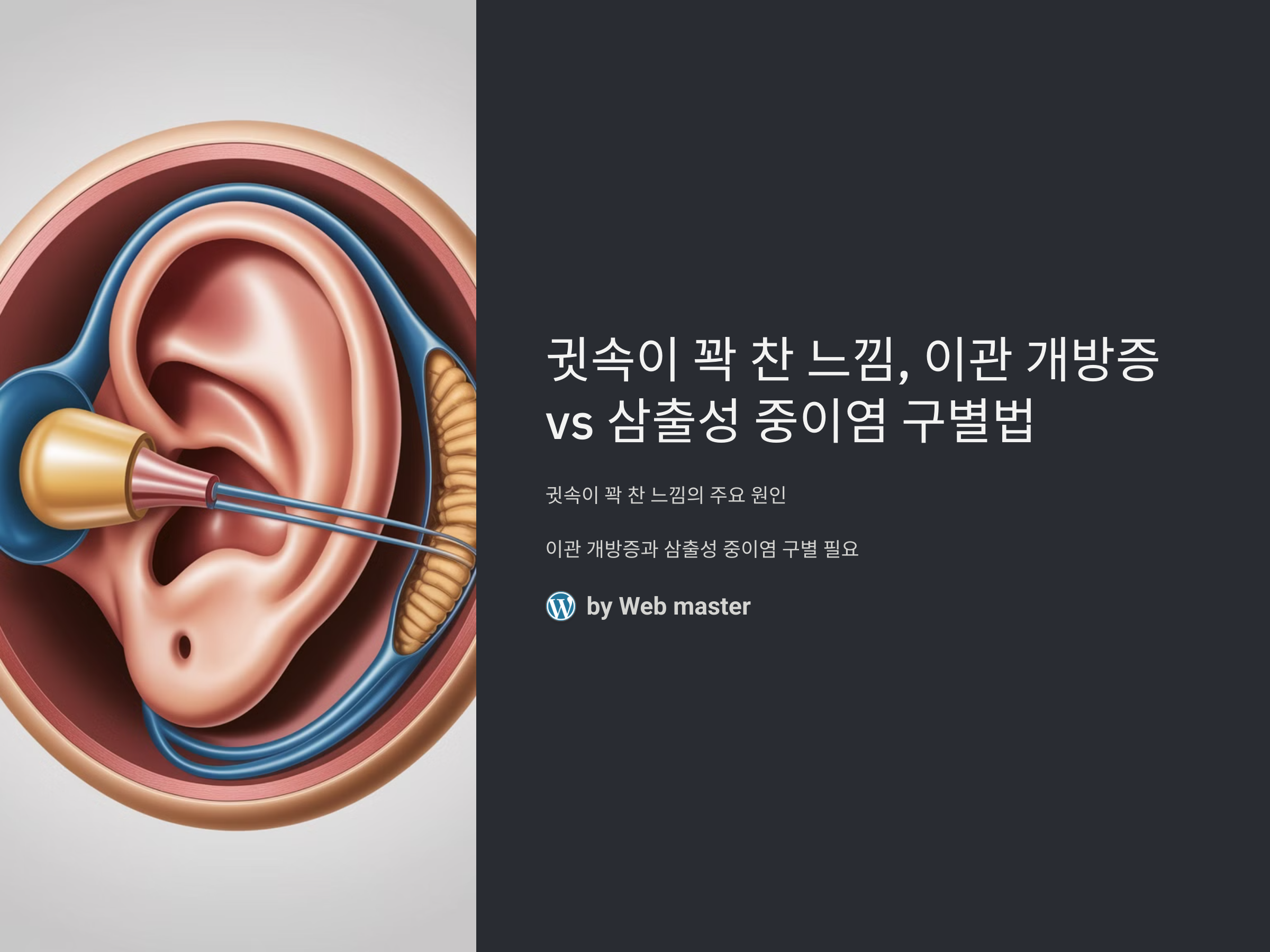 이관 개방증과 삼출성 중이염은 귓속이 꽉 찬 느낌을 유발하는 두 가지 주요 질환으로, 증상이 비슷할 수 있지만 원인과 치료법은 다릅니다. 이관 개방증은 주로 이관의 기능 장애로 인한 증상이며, 삼출성 중이염은 중이 내부의 액체 축적으로 인한 증상입니다.