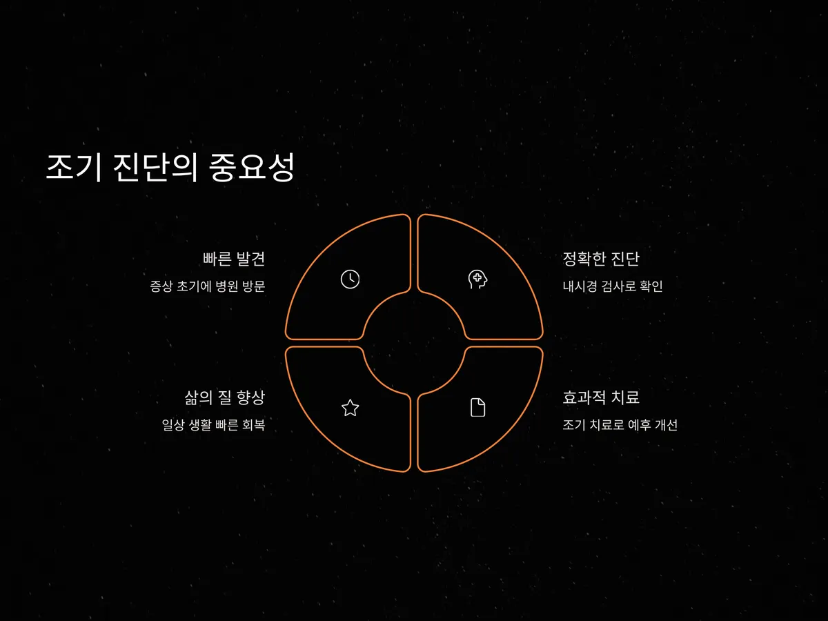 이러한 증상이 한 가지 이상 해당된다면, 단순한 소화 장애로 넘기기보다는 내시경 검사와 전문 상담을 받아보는 것이 안전합니다. 조기 진단은 치료 예후에 있어 결정적인 차이를 만들어냅니다.