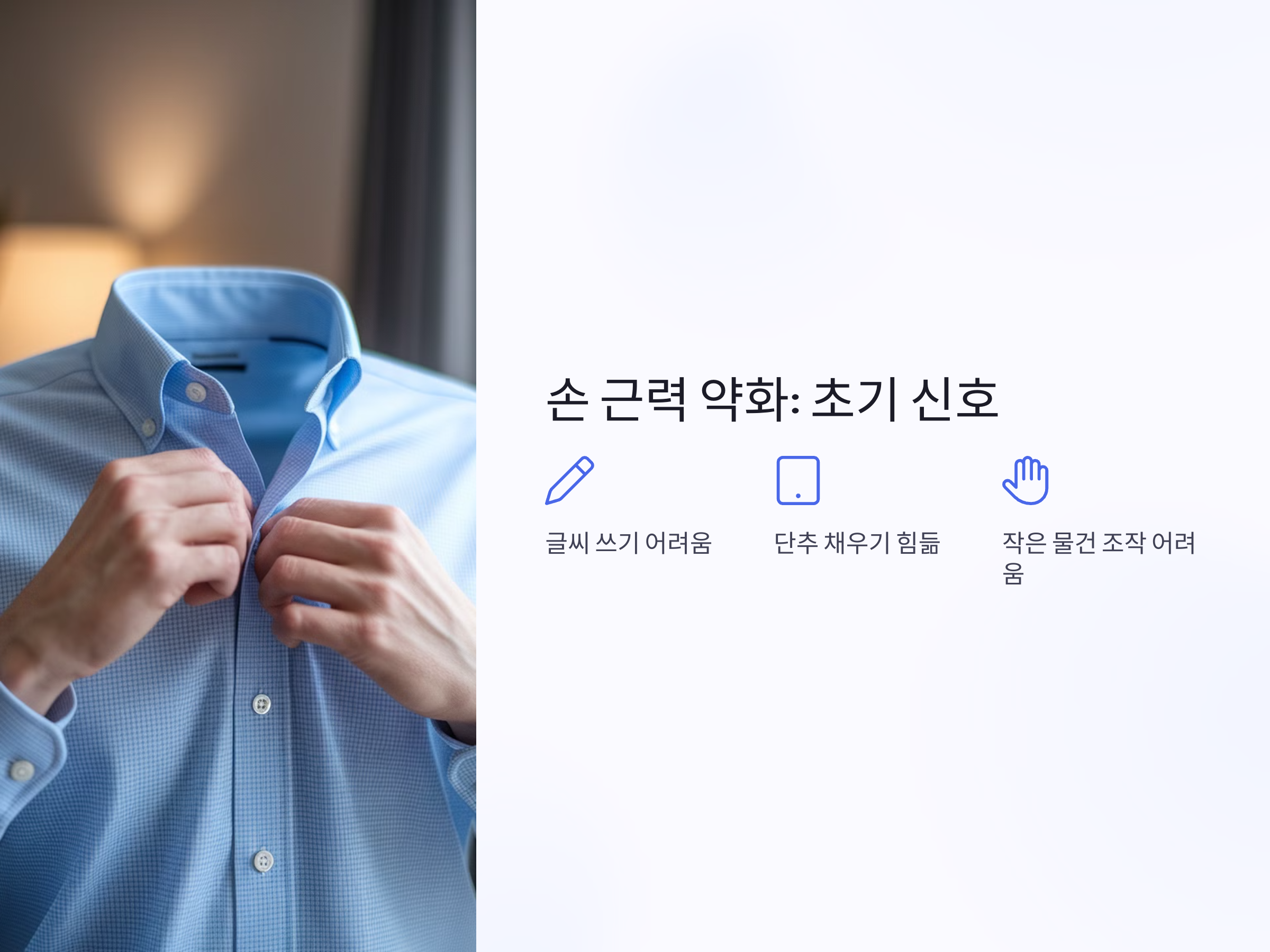 - 손 보조기구 사용: 약해진 손의 기능을 보완할 수 있는 도구 사용