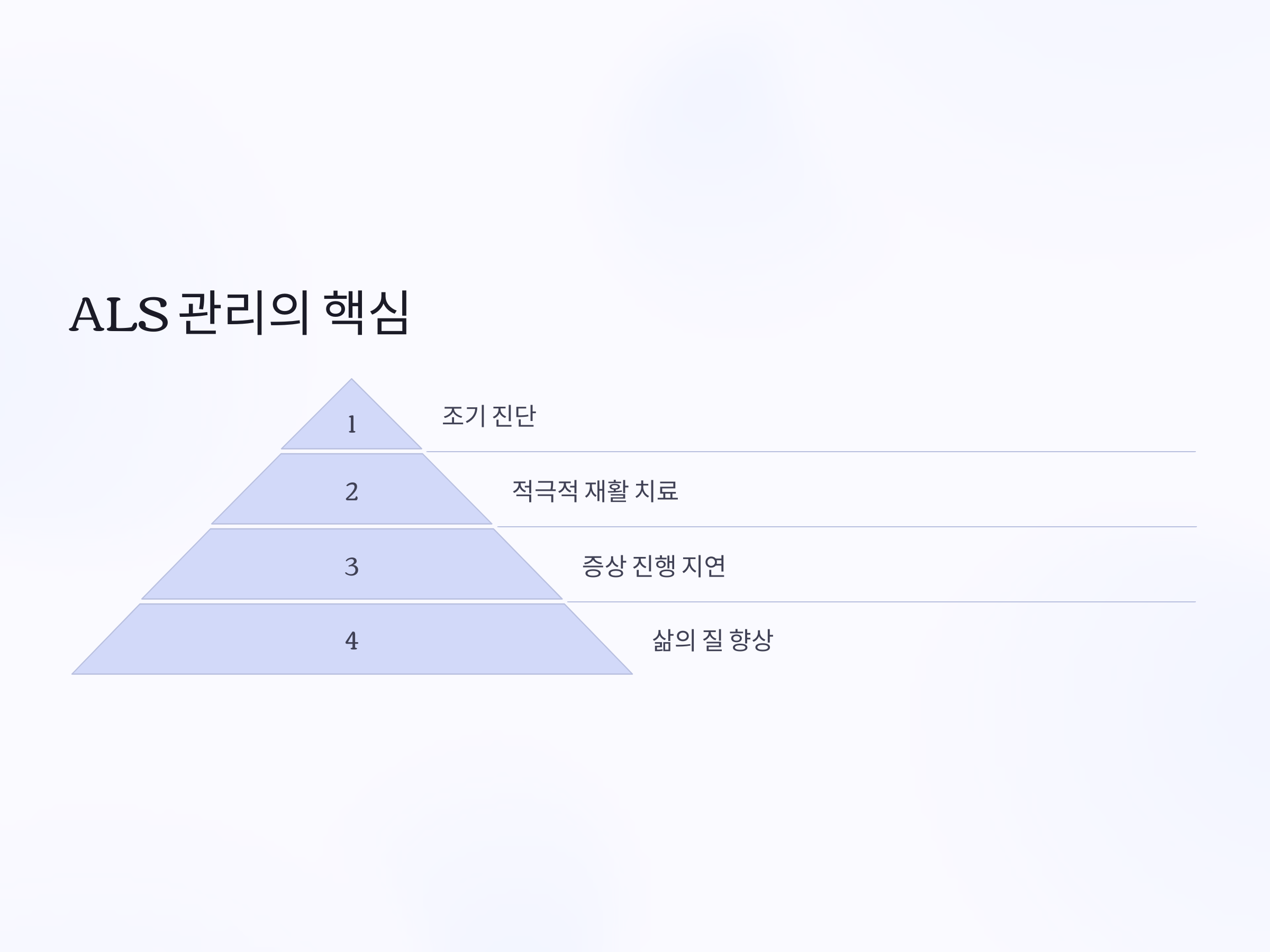 ALS는 진행 속도가 개인마다 다르며, 증상 완화 및 삶의 질 향상을 위한 적극적인 관리가 필수적입니다.