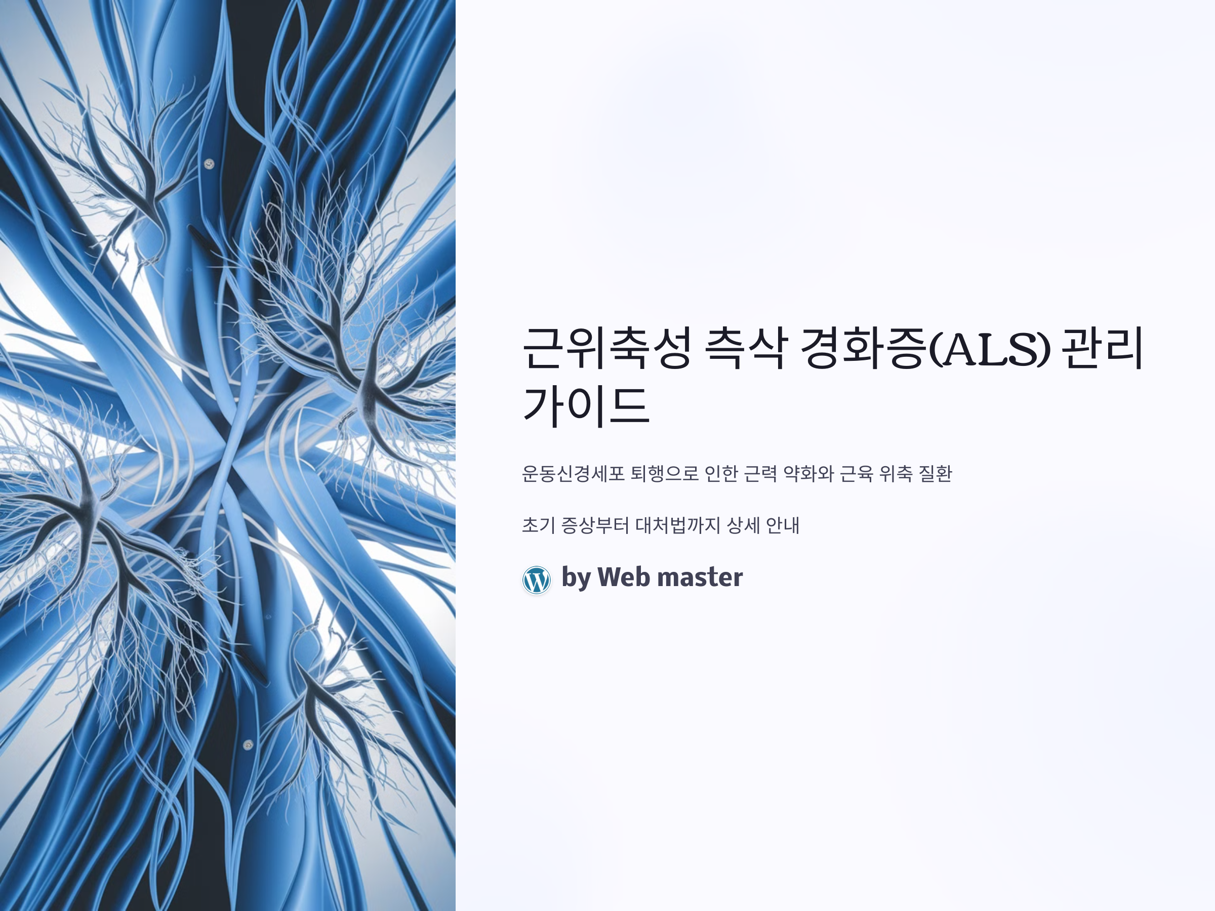ALS(Amyotrophic Lateral Sclerosis)는 신경퇴행성 질환 중 하나로, 운동신경세포(운동뉴런)가 점점 소실되면서 근육이 약해지고 위축되는 질환입니다. 이 질환은 전신의 근육에 영향을 미치며, 초기에는 특정 부위에서 시작하여 점차적으로 증상이 확산됩니다.