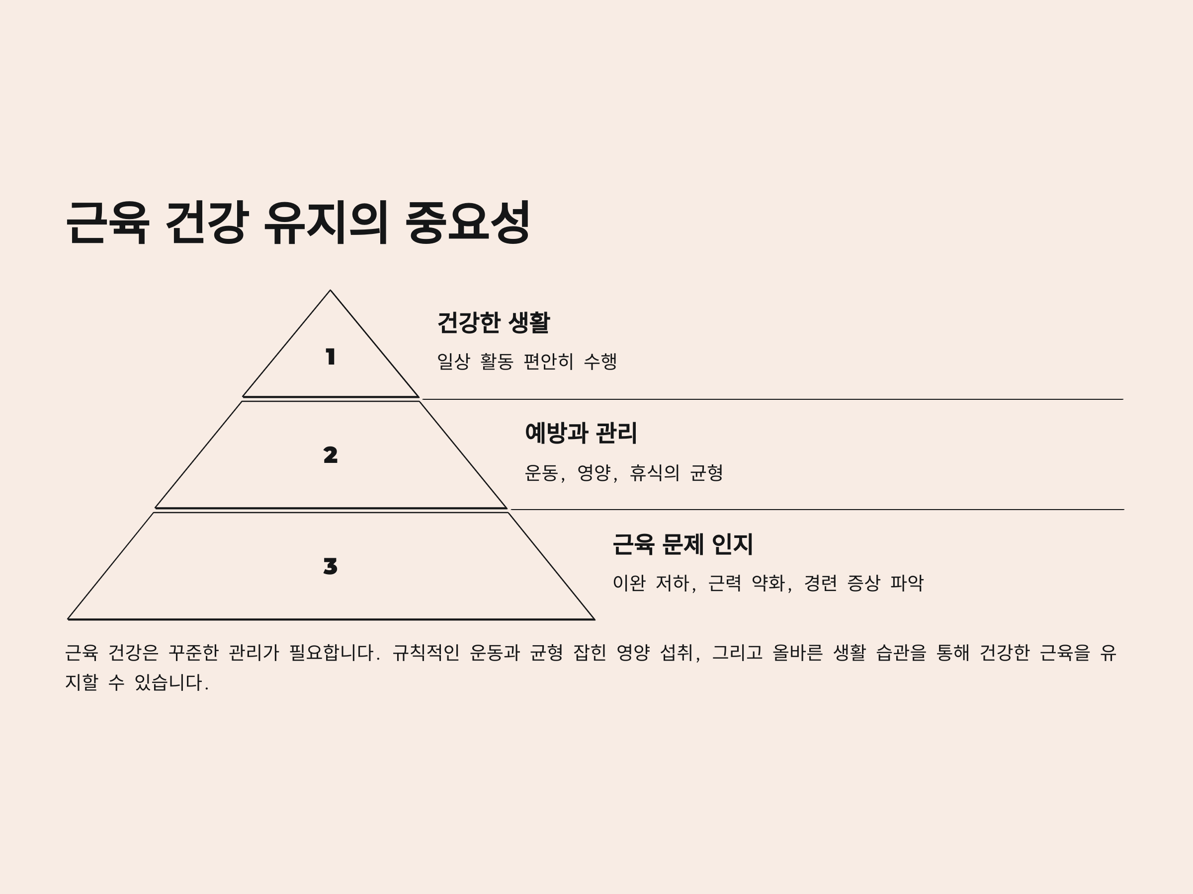 근육의 건강을 유지하기 위해서는 꾸준한 관리가 필요합니다. 운동과 영양 섭취를 통해 근육을 강화하고, 생활 습관을 개선하여 건강한 몸을 유지할 수 있습니다.