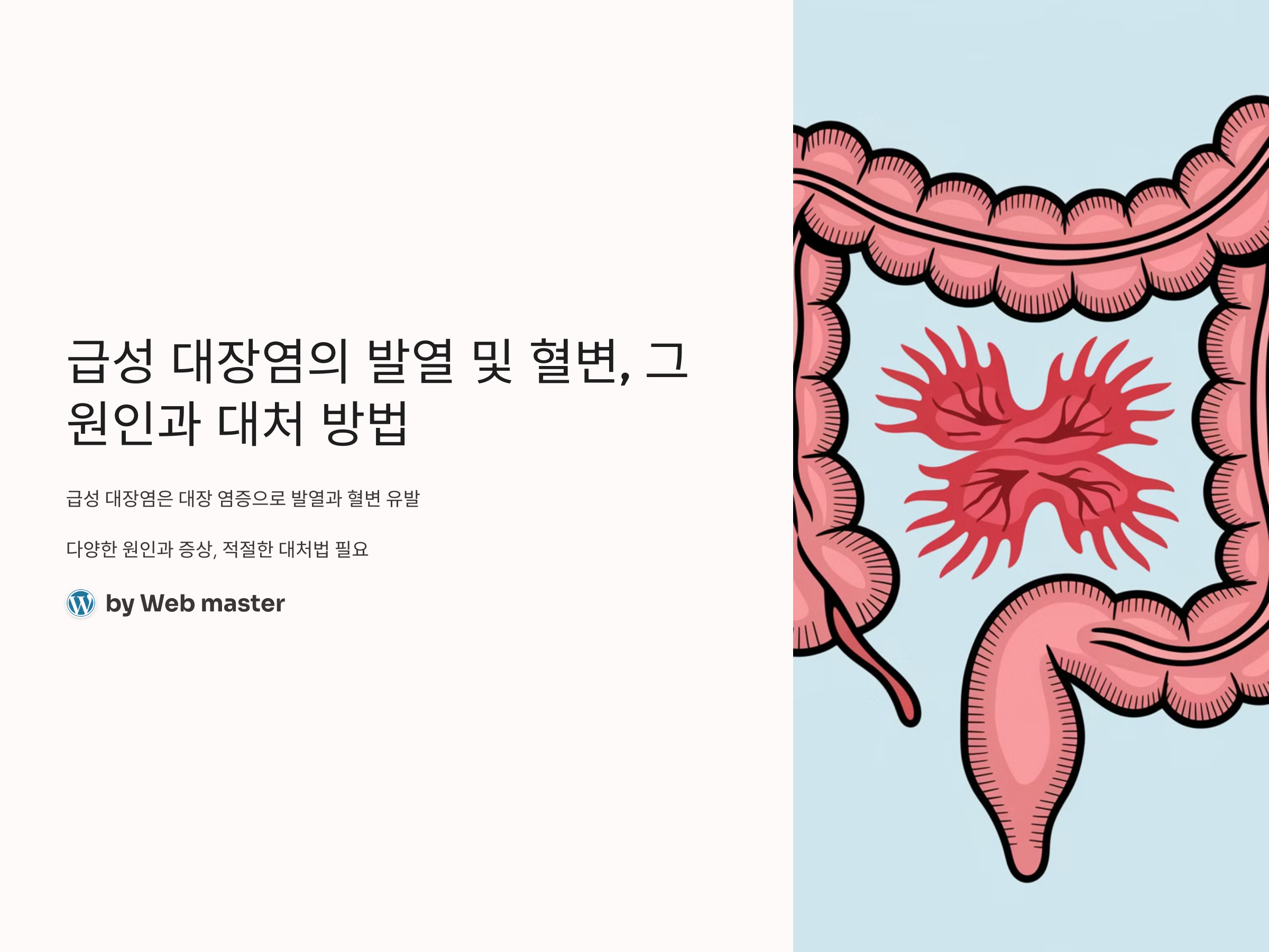 발열과 혈변은 급성 대장염의 경고 신호일 수 있으며, 이를 간과하지 않고 빠르게 병원에서 치료를 받는 것이 중요합니다. 만약 증상이 계속되거나 악화되면, 의사의 조언을 받아 정확한 진단을 받고 치료를 받는 것이 가장 좋은 방법입니다.