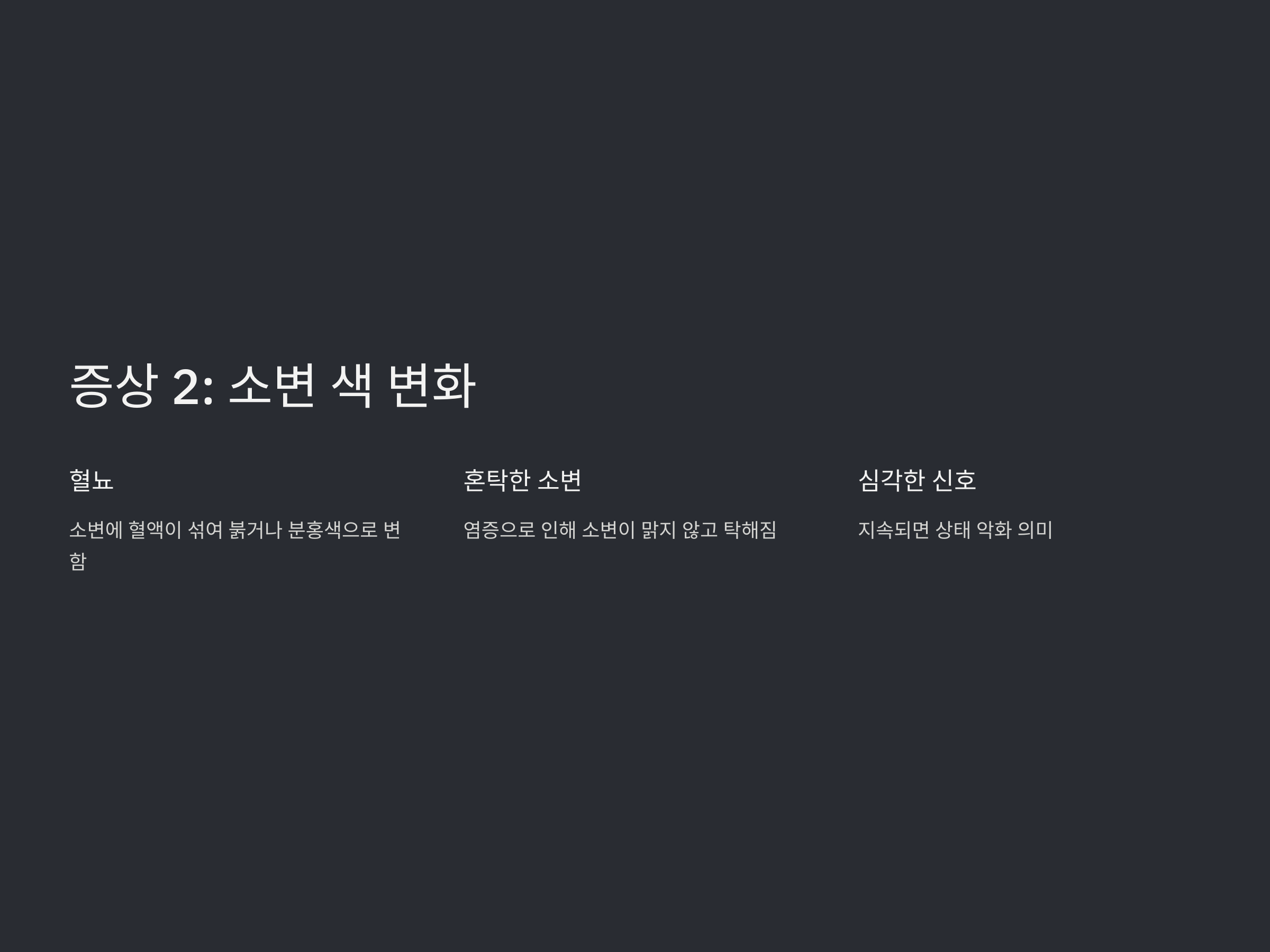 2. 소변에서 혈액이나 혼탁한 색이 보임