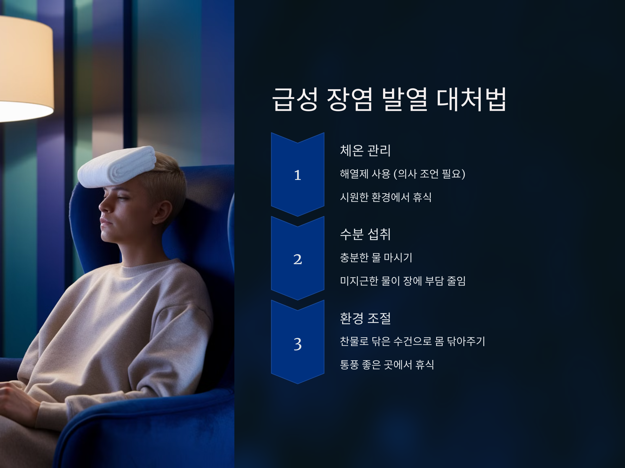 급성 장염에 의한 발열은 몸이 감염에 반응하면서 발생하는 증상으로, 발열이 지속되거나 고열이 발생하면 더욱 주의해야 합니다. 고열은 탈수 증세를 악화시킬 수 있기 때문에 발열을 관리하는 것이 매우 중요합니다. 발열이 있을 때는 다음과 같은 방법으로 대처할 수 있습니다.