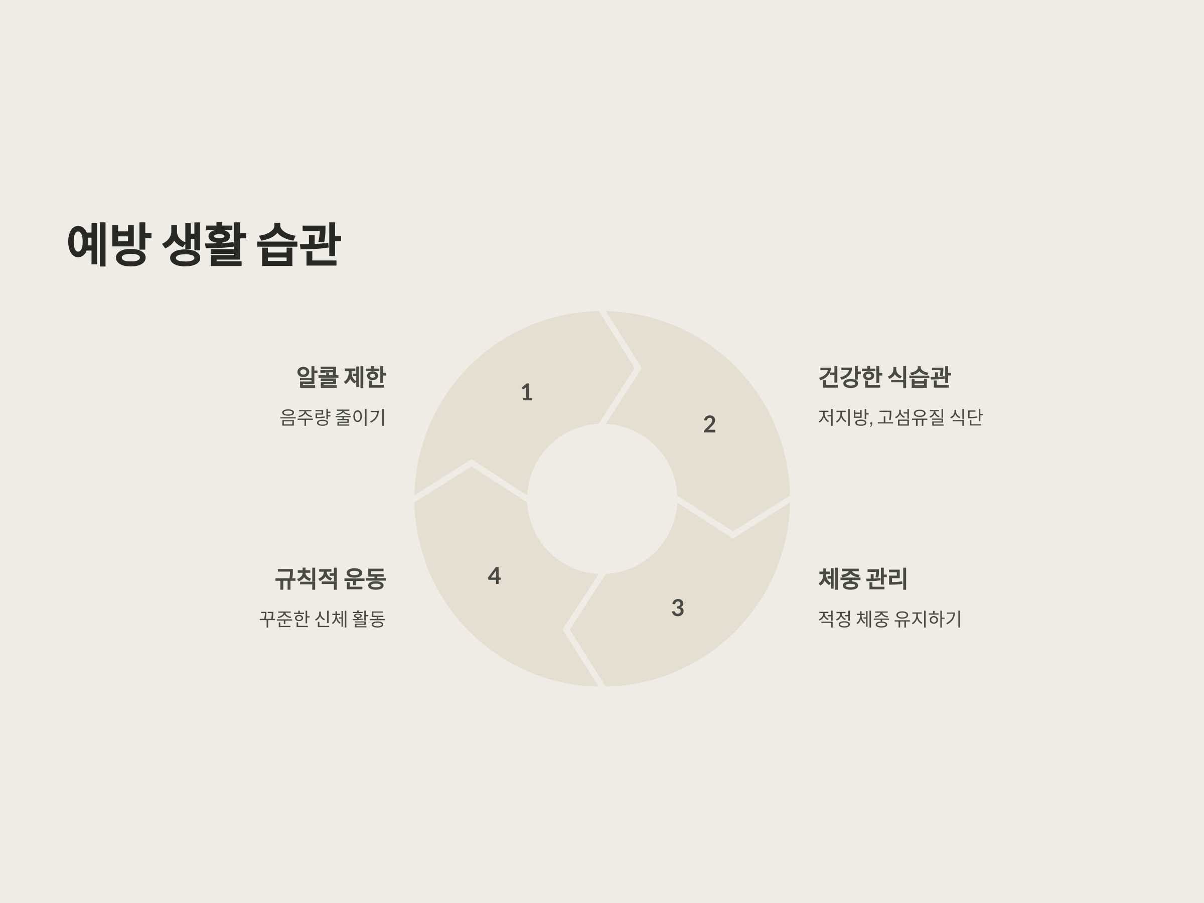 급성 췌장염은 예방할 수 있는 방법이 있습니다. 가장 중요한 예방책은 알콜 섭취를 줄이고, 건강한 식습관을 유지하는 것입니다. 고지방 식사나 과도한 음주는 췌장에 큰 부담을 주어 염증을 일으킬 수 있습니다. 또한, 규칙적인 운동과 체중 관리도 중요합니다.