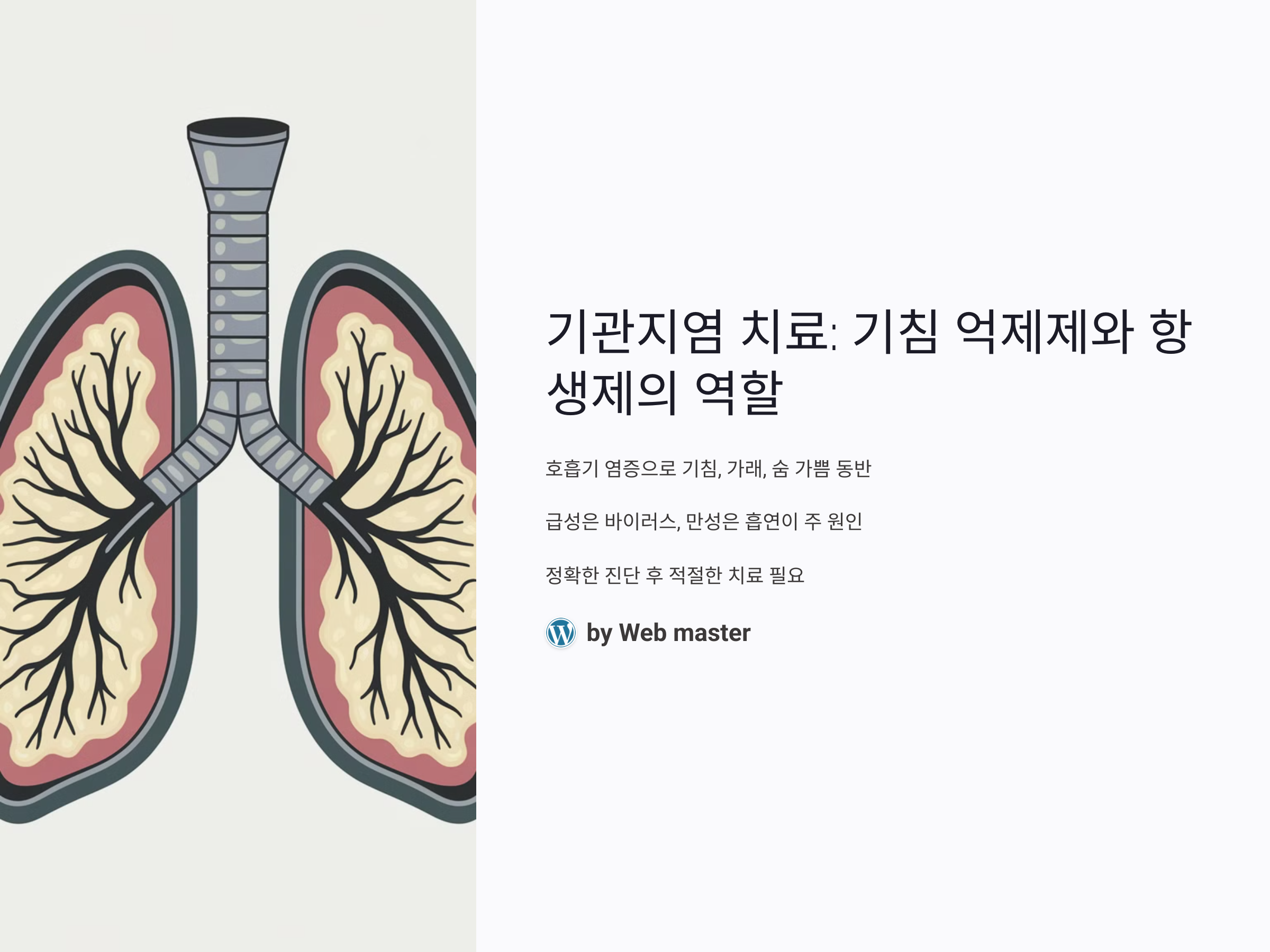 기관지염 치료에서 중요한 것은 정확한 진단입니다. 바이러스성 기관지염의 경우 항생제가 필요하지 않으며, 주로 기침 억제제나 점액을 묽게 하는 약물이 처방됩니다. 하지만 세균성 감염이 의심되거나 합병증이 있을 경우, 항생제가 필요할 수 있습니다. 이 글에서는 기침 억제제와 항생제의 역할을 자세히 살펴보겠습니다.