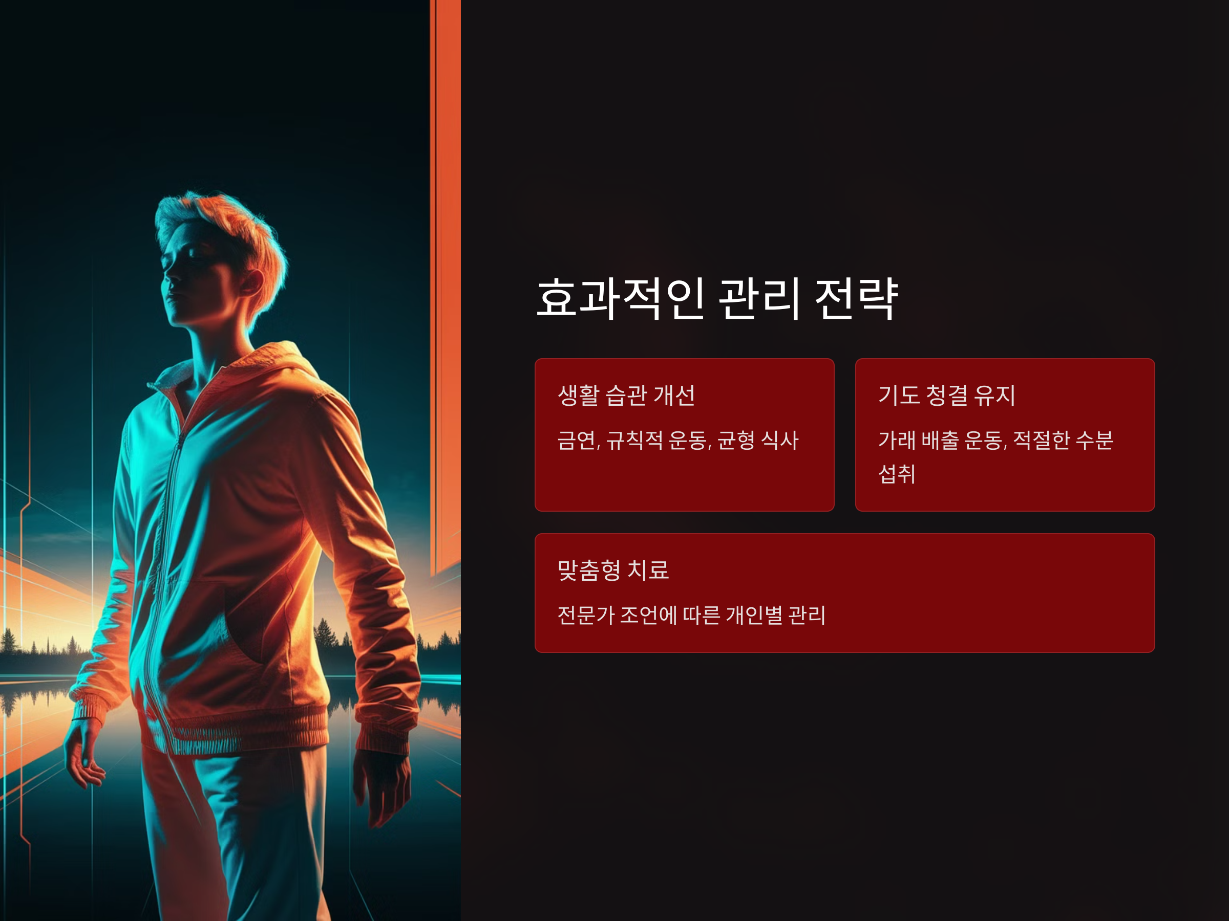 이들 질환을 효과적으로 관리하기 위해서는 생활 습관의 개선과 병원 치료를 병행하는 것이 가장 중요합니다. 금연, 규칙적인 운동, 균형 잡힌 식사, 적절한 수분 섭취는 기본적인 관리 전략입니다.