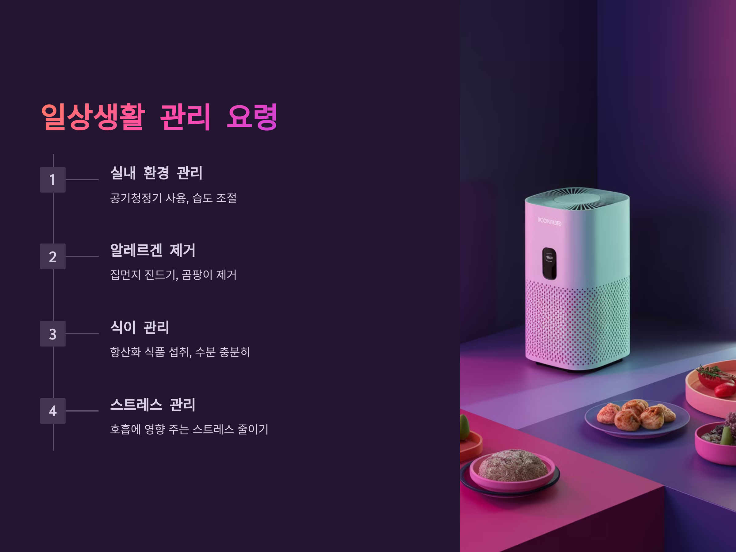 정기적인 운동과 올바른 식습관을 유지하는 것도 호흡기 건강을 지키는 데 도움이 됩니다. 기침이나 호흡에 문제가 발생하면 즉시 병원에 방문하여 검진을 받고, 필요한 경우 치료를 받는 것이 좋습니다.