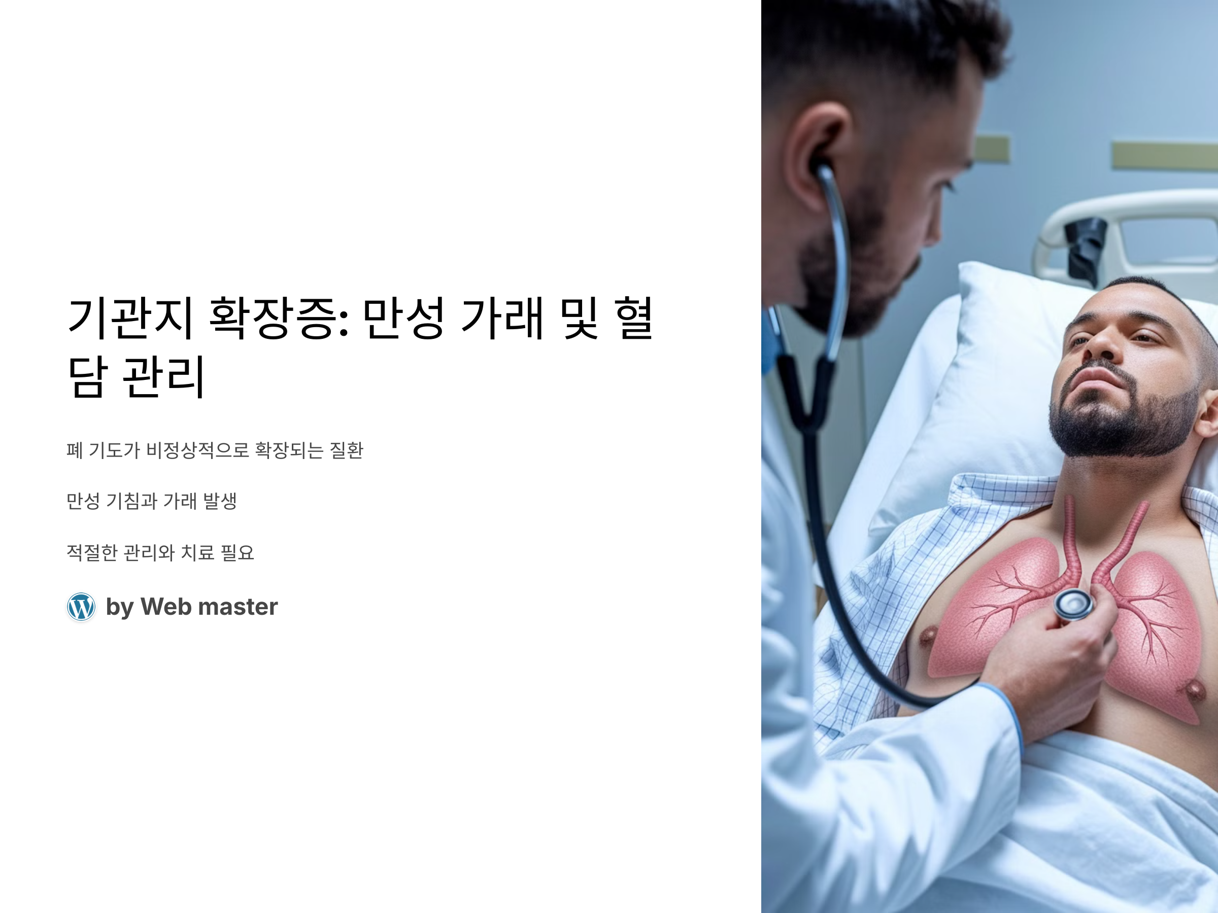 기관지 확장증은 폐의 기도가 비정상적으로 확장되면서 만성적인 기침과 가래가 발생하는 질환입니다. 이 질환은 다양한 원인으로 인해 발생할 수 있으며, 만약 치료가 제대로 이루어지지 않으면 건강에 심각한 영향을 미칠 수 있습니다. 특히 만성 가래와 혈담이 동반되면 환자의 삶의 질이 크게 저하될 수 있습니다. 이 글에서는 기관지 확장증의 원인, 증상, 그리고 효과적인 관리 방법에 대해 다뤄보겠습니다.