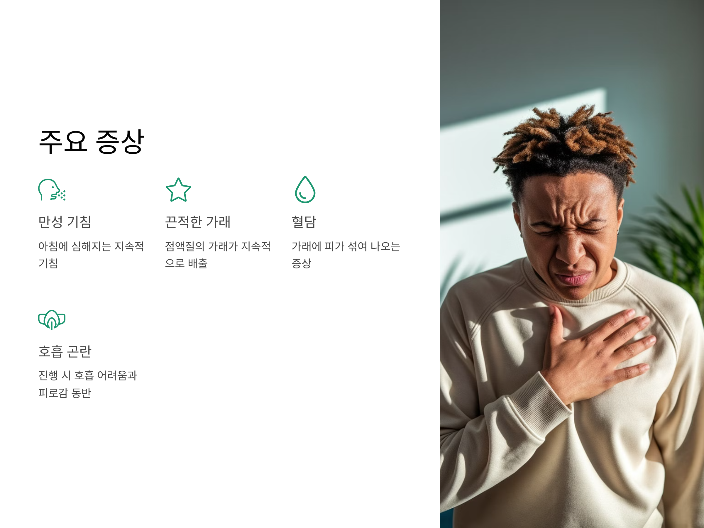 혈담이 동반된 경우, 그 원인을 정확히 파악하는 것이 중요합니다. 혈담은 기도의 염증으로 인해 발생할 수 있으며, 이는 심각한 감염이나 폐의 손상을 나타낼 수 있습니다. 따라서 혈담이 자주 나오거나 지속된다면 즉시 전문의를 찾아 정확한 진단을 받아야 합니다.