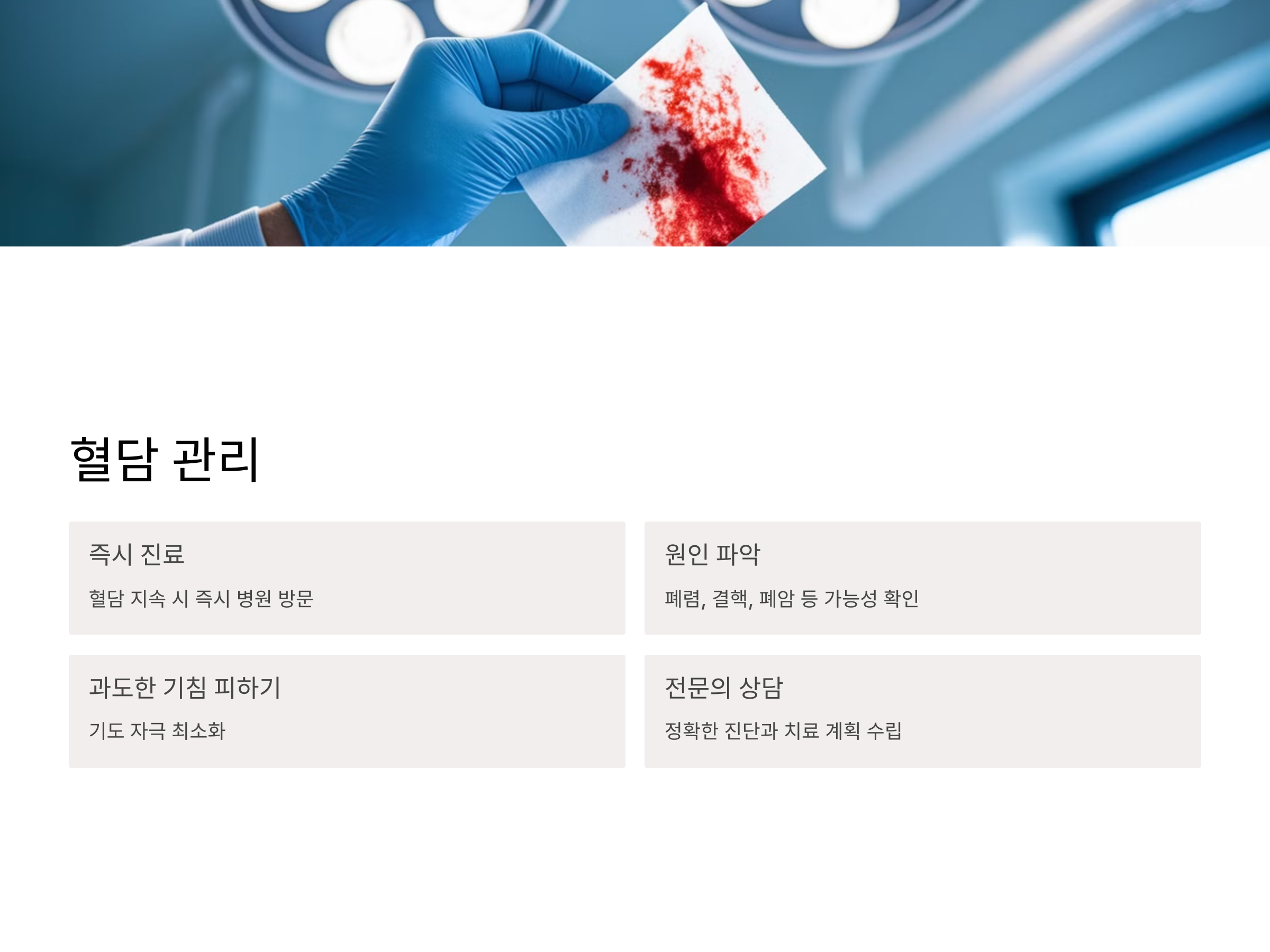 혈담이 동반된 경우의 특별한 관리