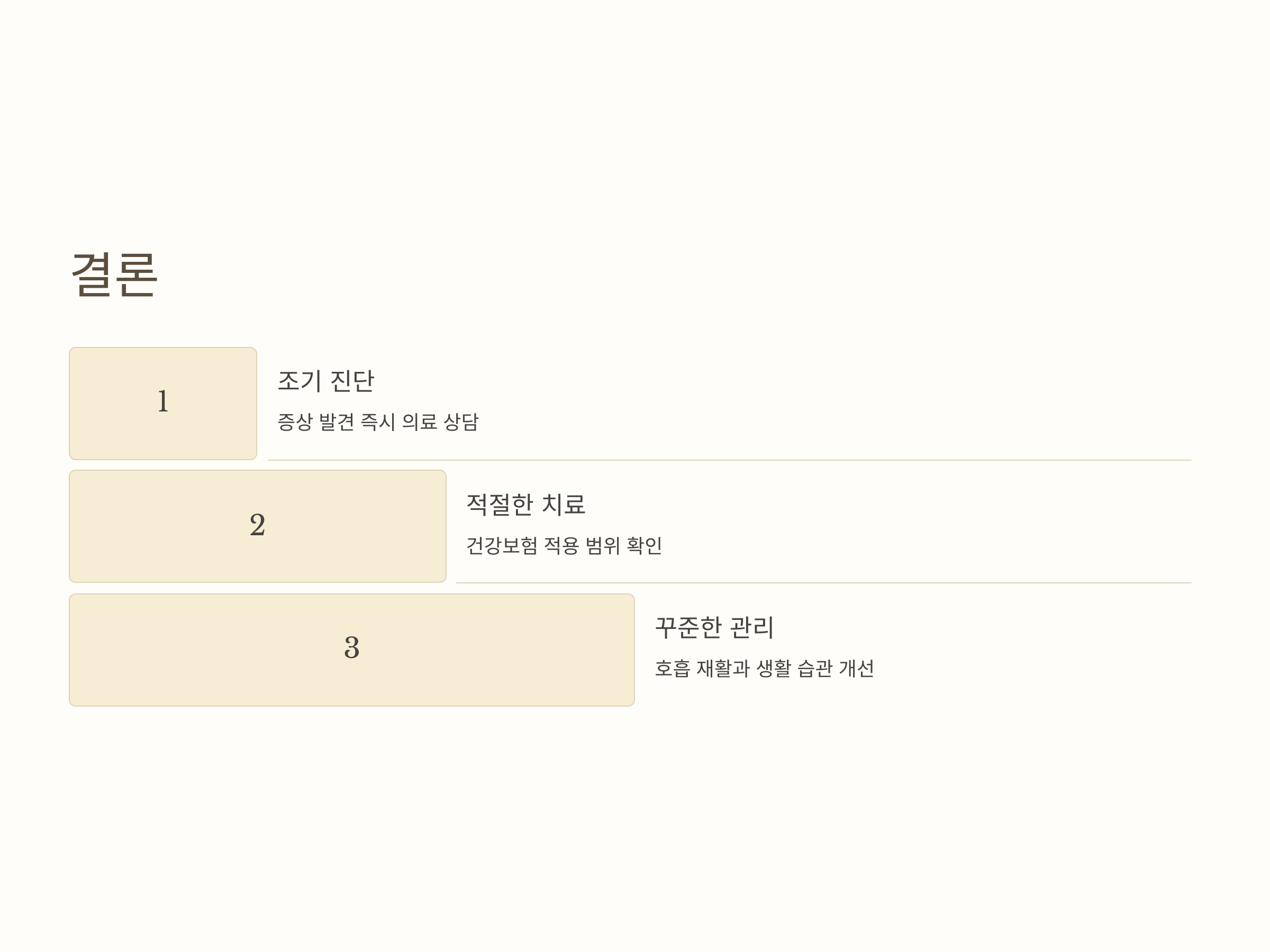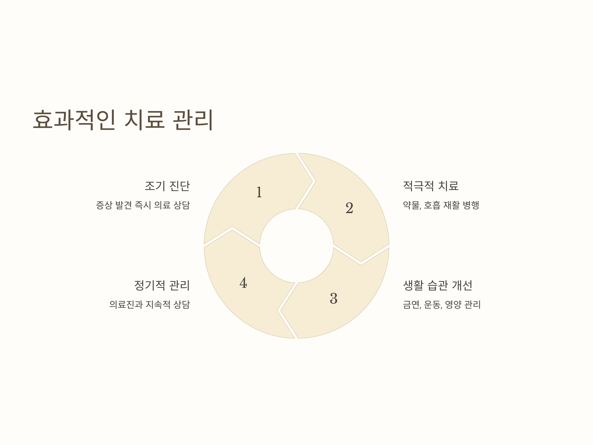 - 정기적인 의료 검진: 주기적으로 병원을 방문해 폐 기능을 점검하고, 필요한 경우 조기에 치료를 시작하는 것이 중요합니다.
