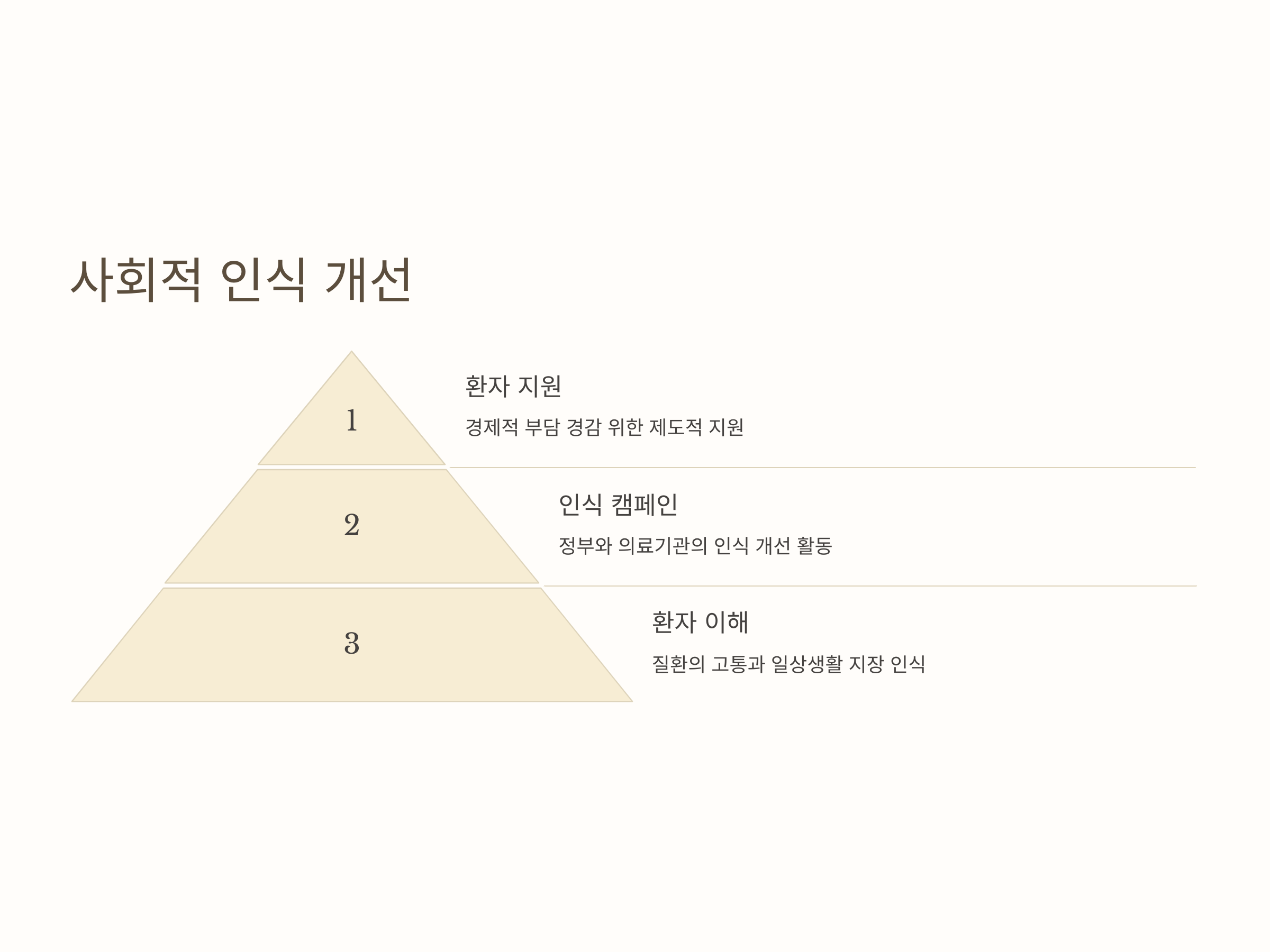 사회적 인식 개선이 필요하며, 이를 통해 환자들이 더 나은 치료를 받을 수 있는 환경을 만들어야 합니다. 정부와 의료기관은 이 질환에 대한 인식을 높이기 위한 캠페인을 진행할 필요가 있습니다. 또한, 기관지 확장증 환자들이 겪는 경제적 부담을 덜기 위한 제도적 지원도 중요합니다.