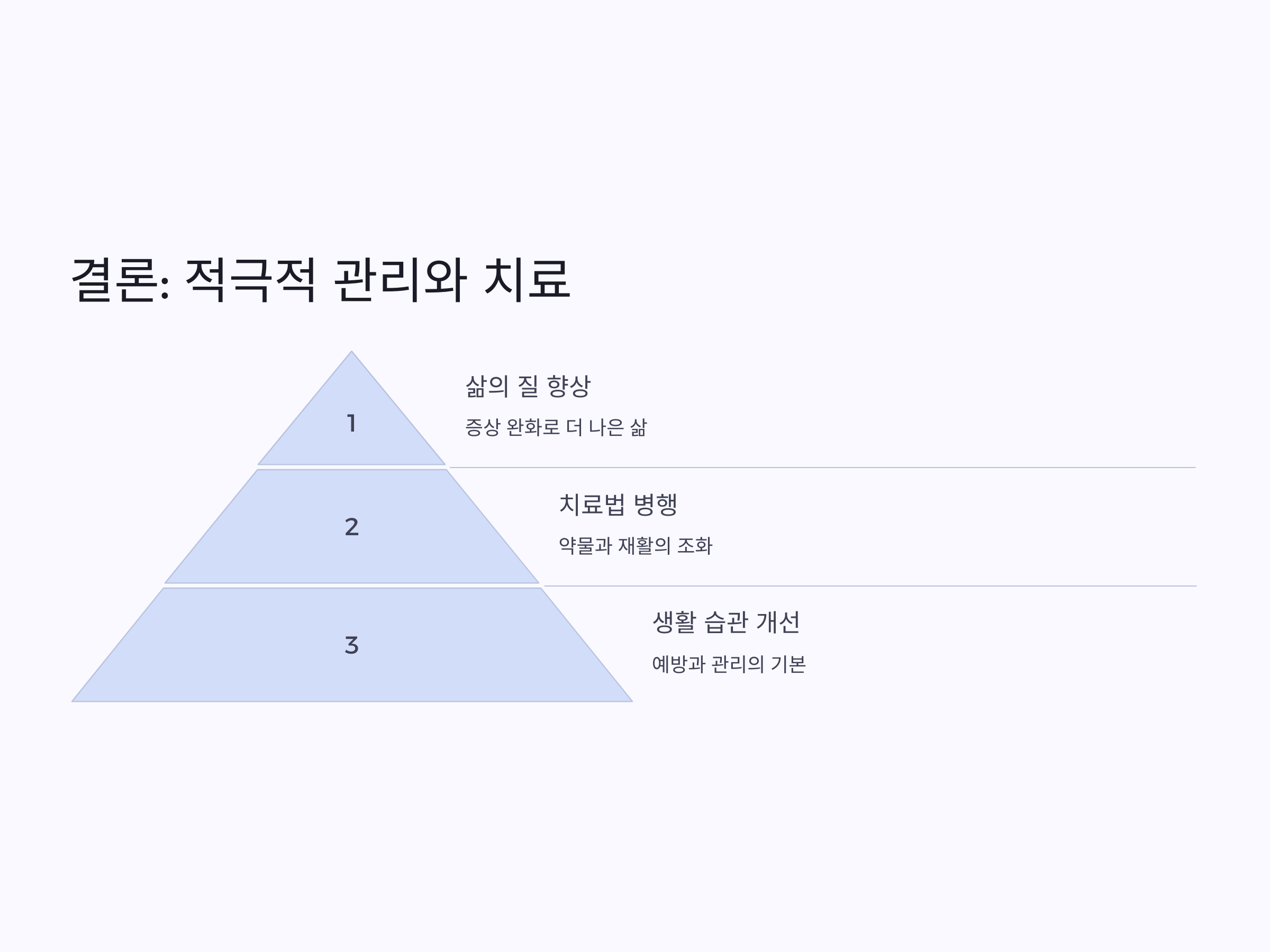 약물 치료를 통해 급성 증상을 완화하고, 재활 치료를 통해 장기적인 관리와 호흡 기능의 향상을 이끌어내는 것이 중요합니다. 환자 개개인의 상태에 따라 맞춤형 치료 계획을 세우고, 꾸준히 치료를 이어가는 것이 필요합니다. 또한, 생활 습관 개선과 적절한 운동도 함께 병행하여 건강한 삶을 유지할 수 있습니다.