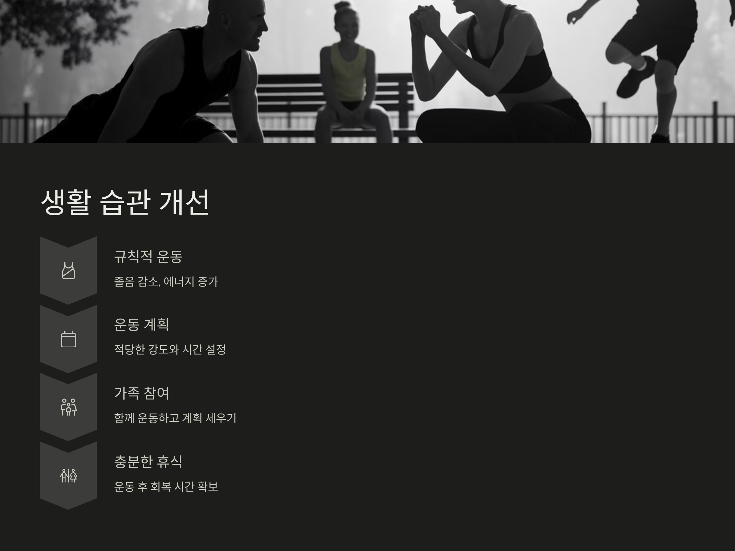 가족은 환자가 운동을 습관화할 수 있도록 함께 운동을 하거나, 운동 계획을 함께 세우는 방법으로 도움을 줄 수 있습니다. 또한, 운동 후에는 반드시 충분한 휴식을 취할 수 있도록 돕는 것이 필요합니다. 이런 작은 변화가 환자의 일상적인 관리에 긍정적인 영향을 미칠 수 있습니다.