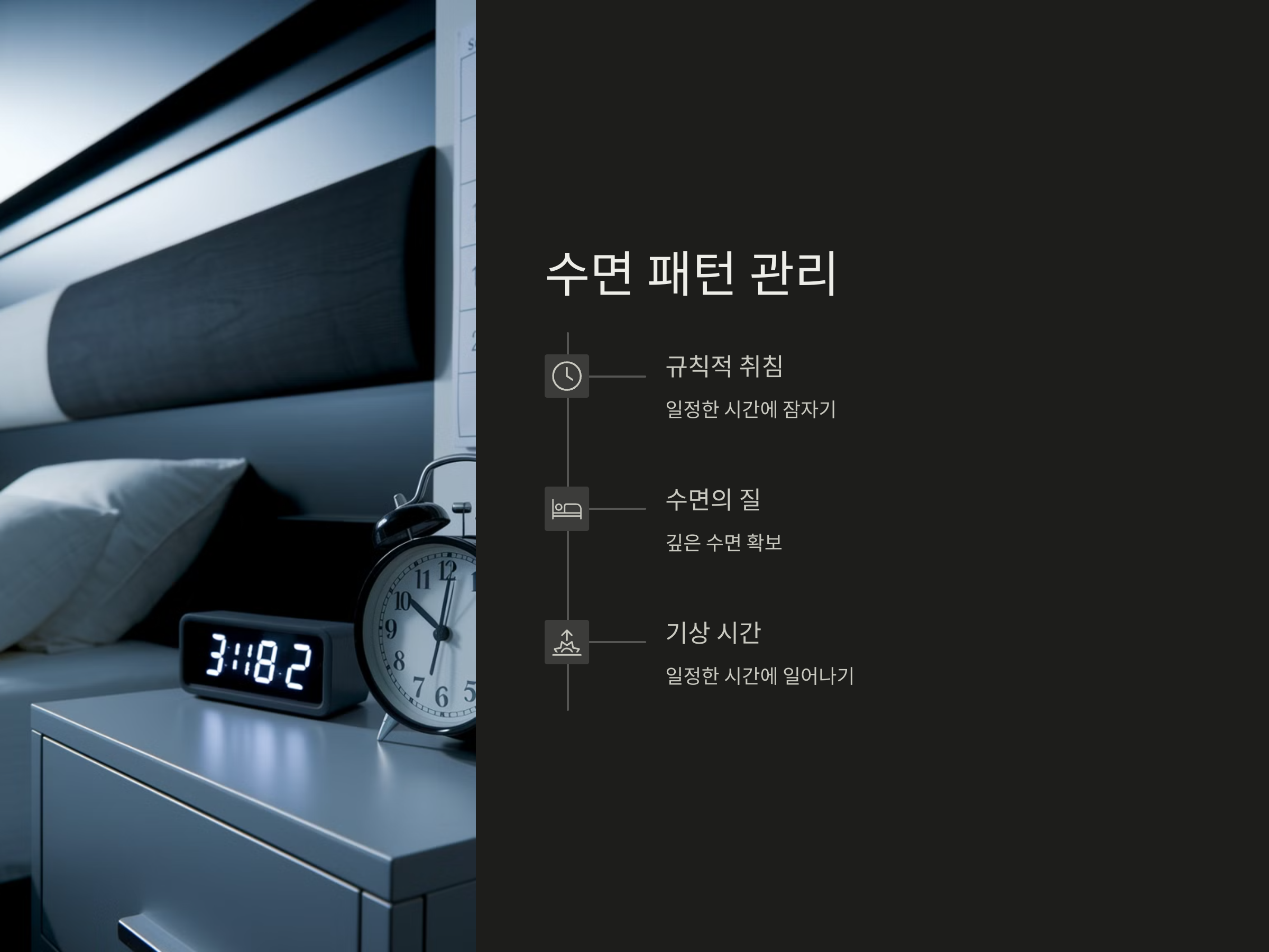 기면증 환자는 수면 패턴을 조절하는 것이 핵심적인 관리 방법입니다. 일정한 시간에 잠을 자고, 일정한 시간에 일어나는 규칙적인 생활이 기면증의 증상을 완화하는 데 도움이 됩니다. 하지만 수면의 질도 매우 중요하므로, 단순히 잠을 자는 것만으로는 충분하지 않습니다.