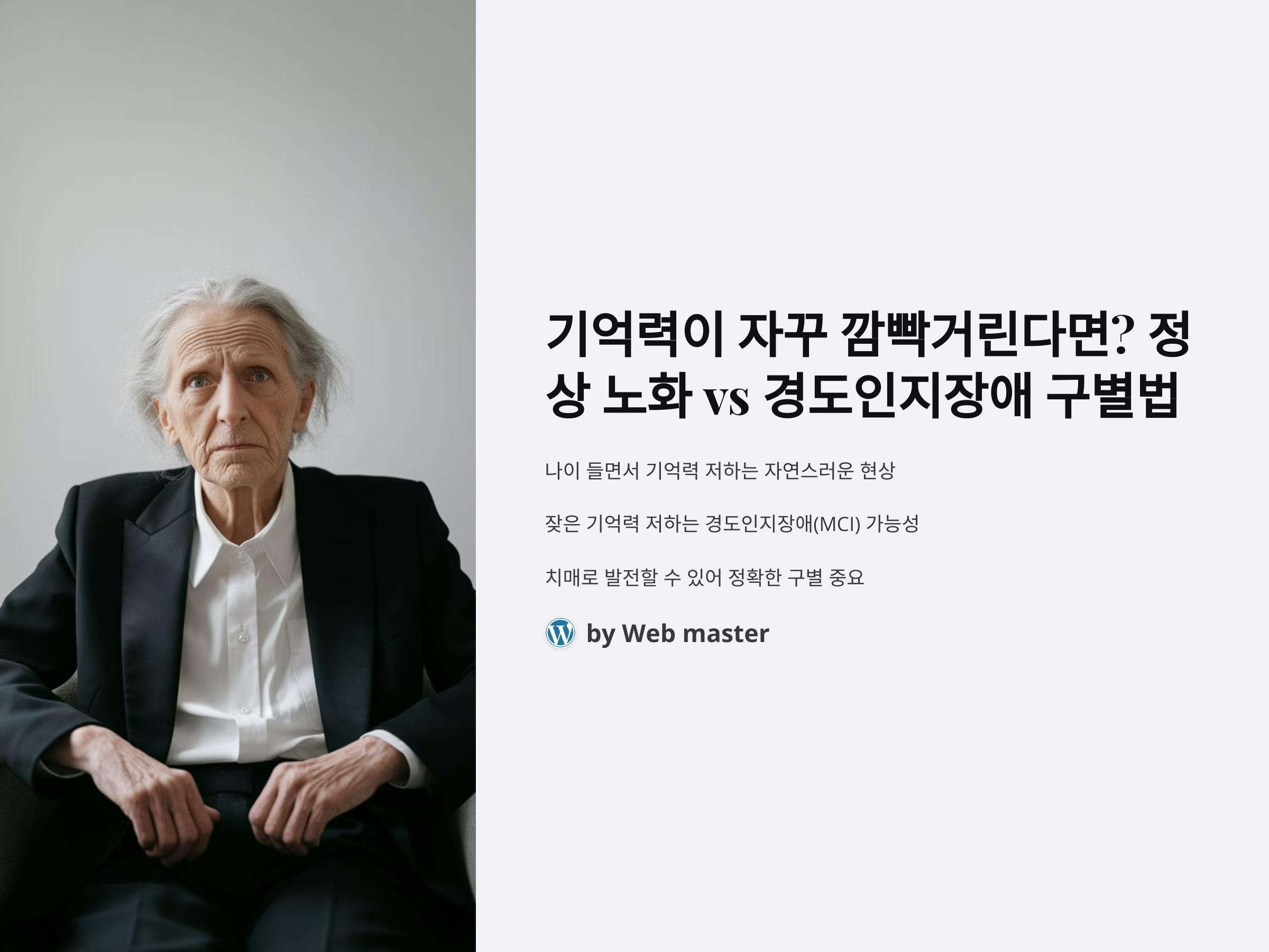 나이가 들면서 자연스럽게 기억력이 조금씩 떨어지는 것은 대부분의 사람들이 경험하는 일입니다. 그러나 기억력이 자주 깜빡이거나 일상 생활에 영향을 미친다면, 이는 단순한 노화가 아닌 경도인지장애(MCI)일 수 있습니다. 경도인지장애는 치매로 발전할 가능성이 있는 초기 단계로 간주되기 때문에, 이를 정확히 구별하는 것이 중요합니다. 이 글에서는 정상적인 노화와 경도인지장애를 구별할 수 있는 방법을 알려드립니다.