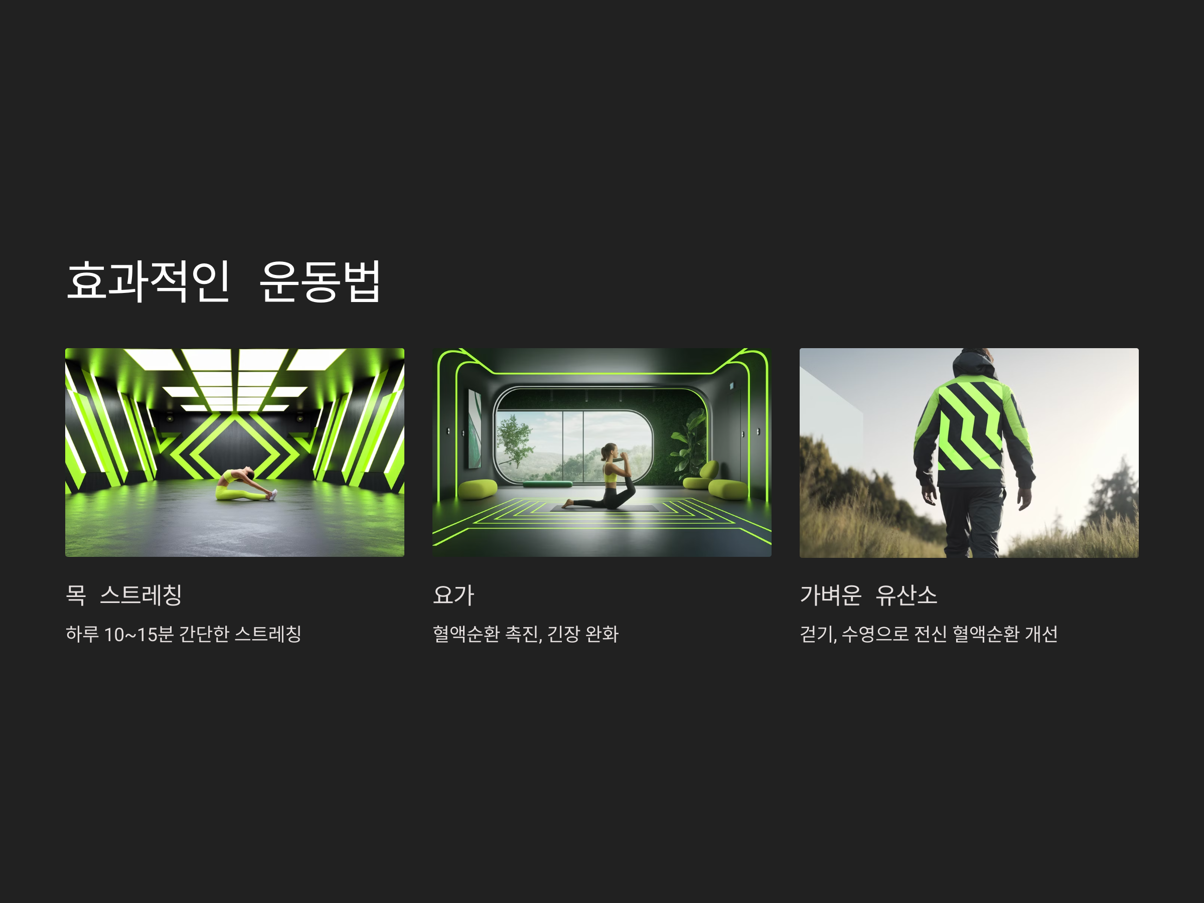- 목과 어깨 스트레칭: 하루 10~15분씩 간단한 스트레칭을 해보세요.