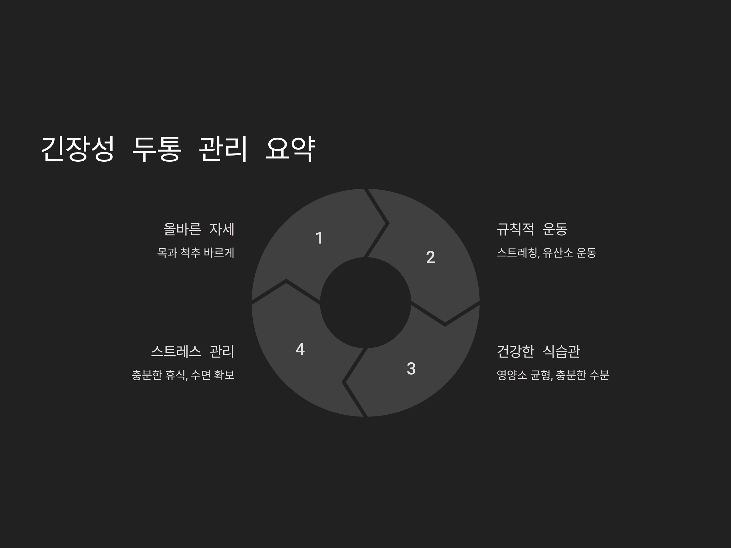 - 가벼운 유산소 운동: 걷기, 수영, 요가 등은 긴장성 두통 완화에 효과적입니다.