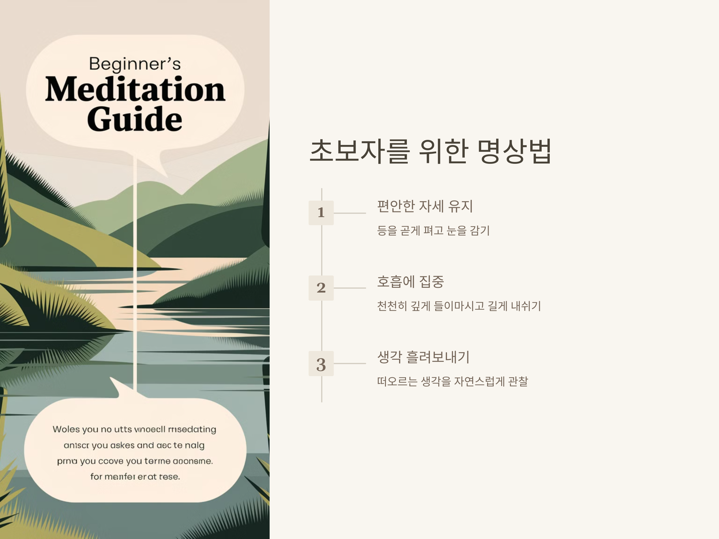 - 머릿속을 비우려 하지 말고, 떠오르는 생각을 자연스럽게 흘려보냅니다.