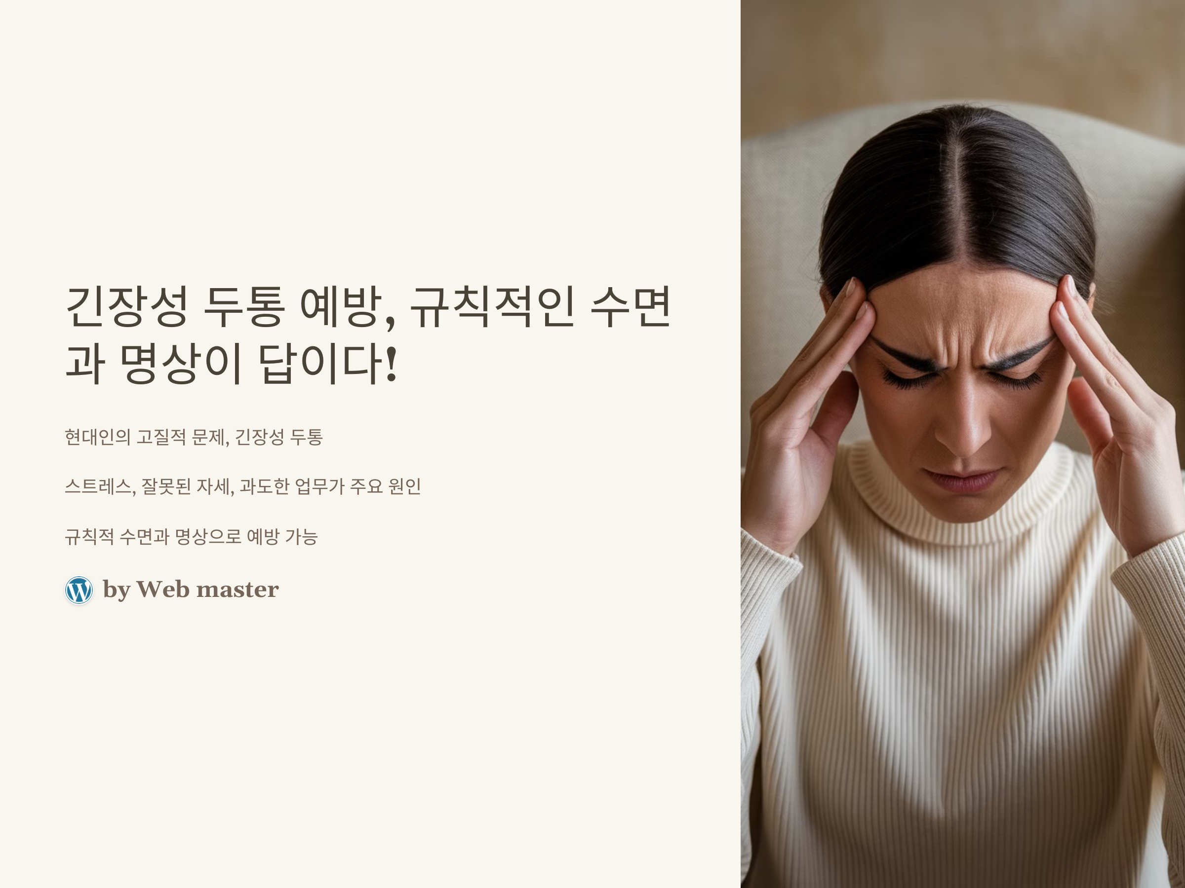 긴장성 두통을 예방하기 위해서는 규칙적인 수면 습관, 명상, 올바른 자세, 그리고 건강한 생활 습관이 필수적입니다. 하루 10분만 투자해도 두통을 줄일 수 있으며, 꾸준한 실천이 가장 중요합니다.