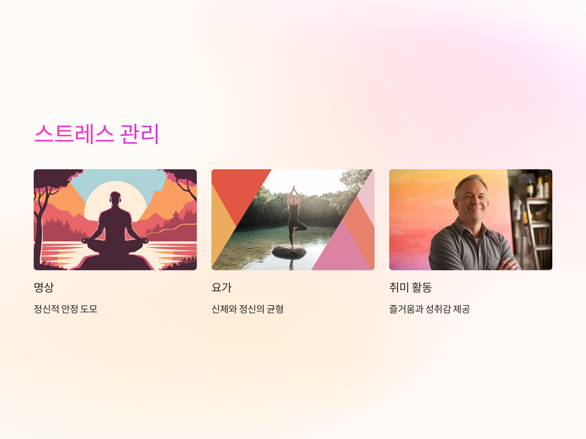 스트레스는 테스토스테론 수치를 감소시키고 갱년기 증상을 악화시킬 수 있습니다. 명상, 요가, 취미 생활 등 다양한 방법을 통해 스트레스를 관리하는 것이 중요합니다. 정신적인 안정을 유지하면 신체 건강에도 긍정적인 영향을 미치며, 갱년기 증상 완화에 도움이 됩니다. citeturn0search6