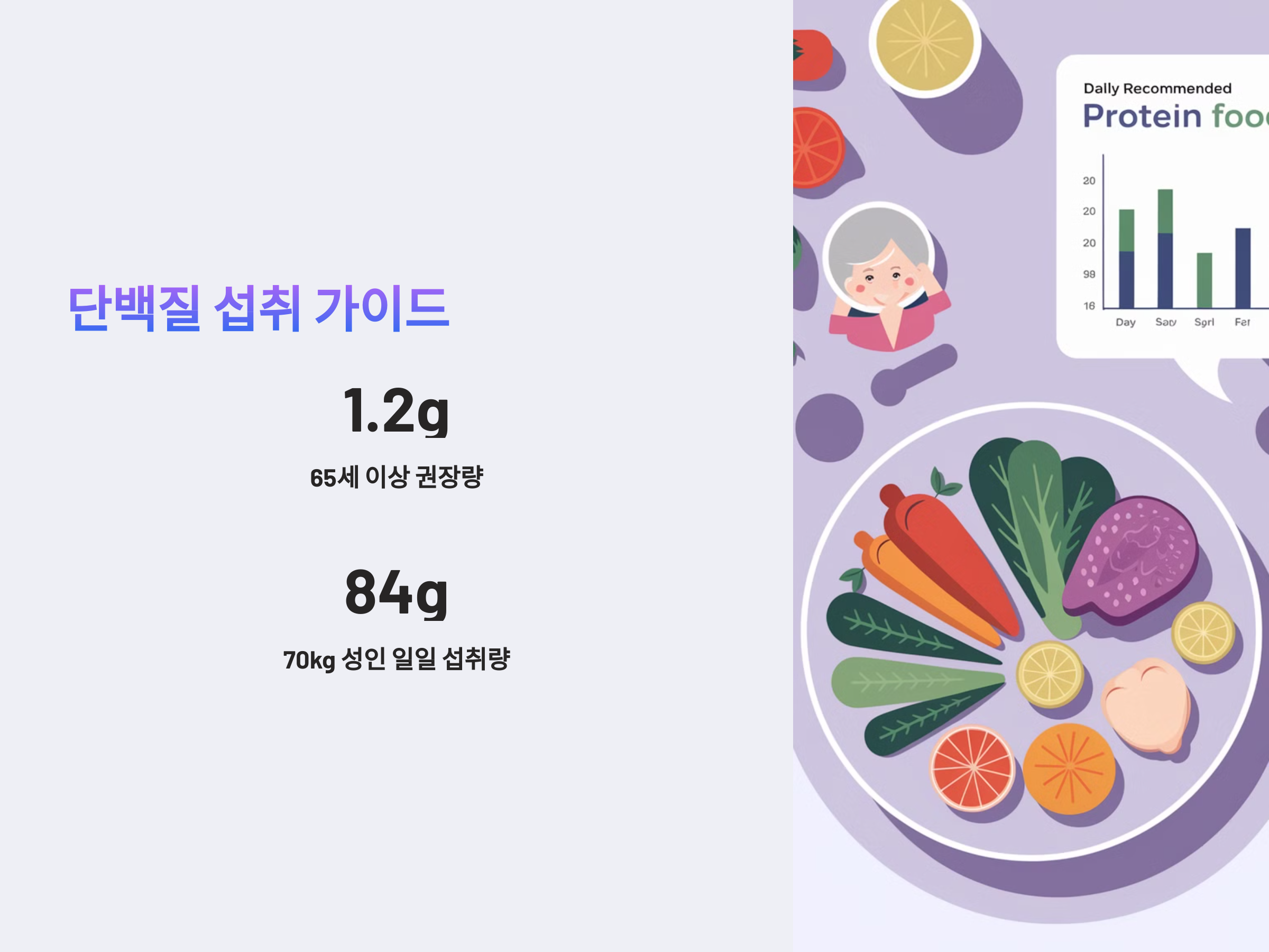 일반적으로 성인은 체중 1kg당 0.8g의 단백질을 섭취하는 것이 권장됩니다. 그러나 나이가 들어감에 따라 이 수치는 증가해야 합니다. 65세 이상이라면 체중 1kg당 최소 1.2g 이상의 단백질을 섭취하는 것이 좋습니다. 예를 들어, 70kg인 성인의 경우 하루에 최소 84g 이상의 단백질을 섭취해야 합니다.