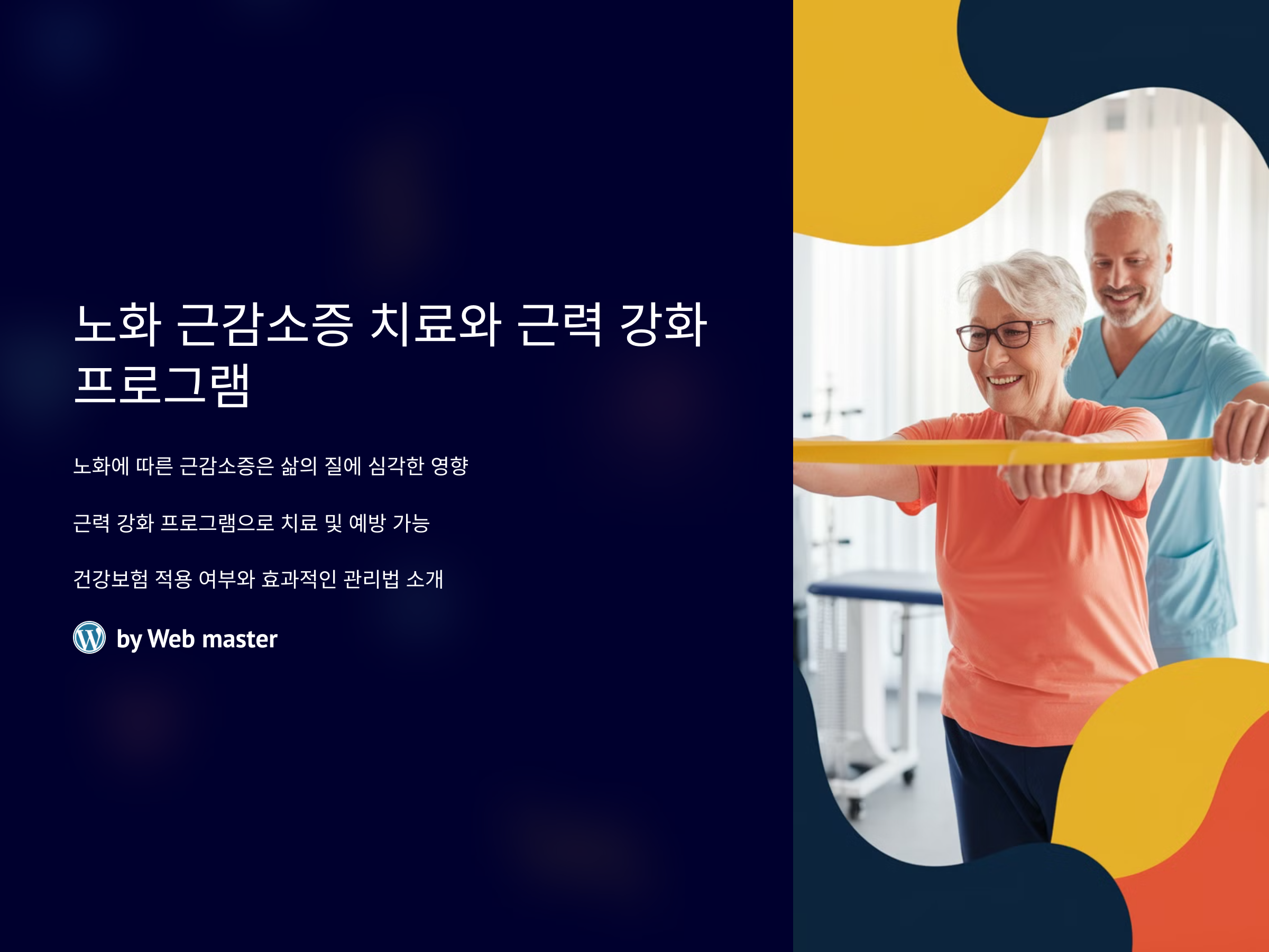 노화에 따른 근감소증 치료는 일부 건강보험의 적용을 받을 수 있습니다. 그러나 근력 강화 운동이나 예방적 차원의 프로그램은 대부분 보험 적용이 되지 않는 경우가 많습니다. 현재 건강보험에서 지원되는 근감소증 관련 치료는 주로 병원에서 처방된 약물 치료나, 일부 특수한 경우에 한정되어 있습니다.