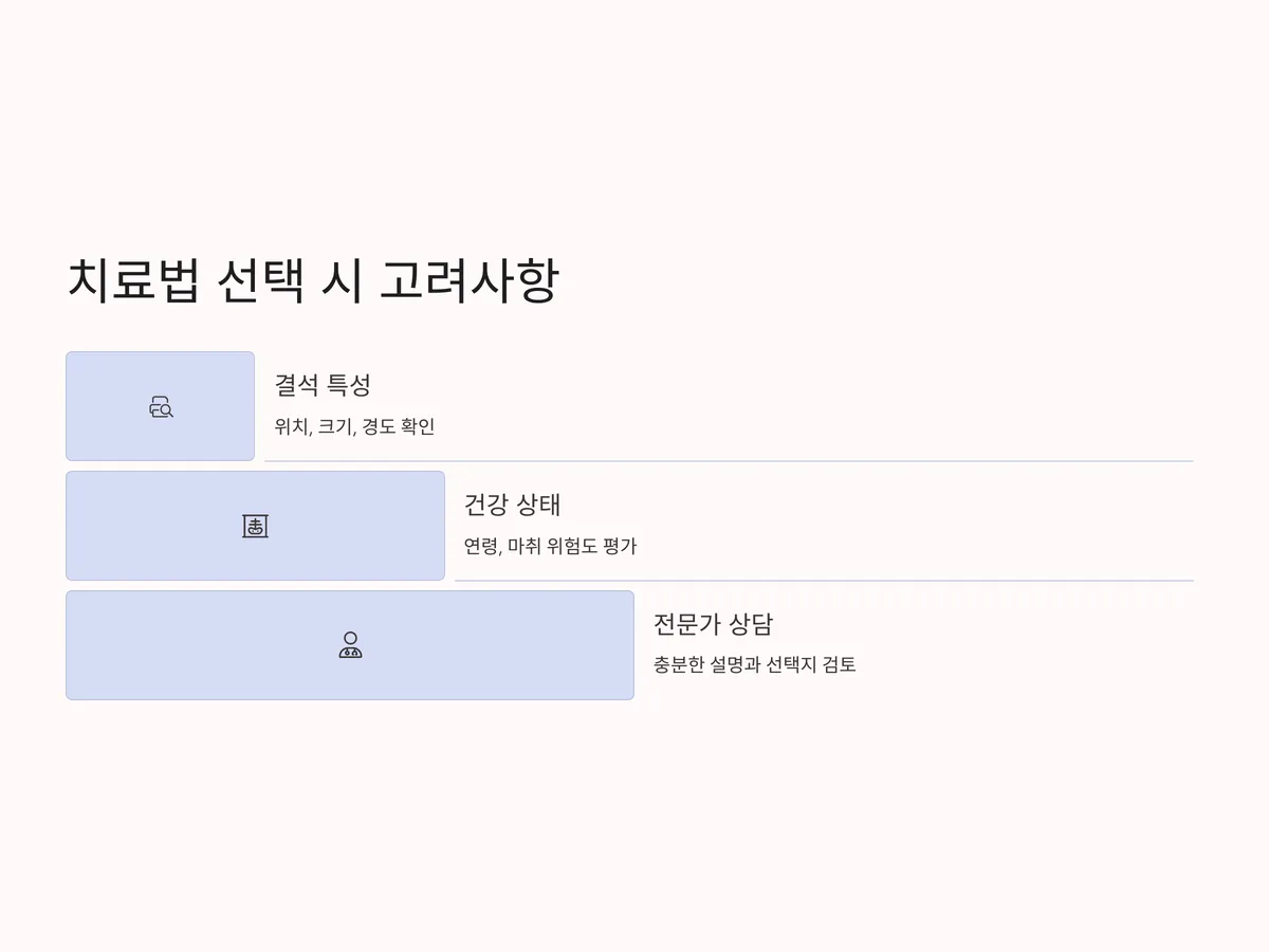 결석 치료 선택 시 고려해야 할 사항