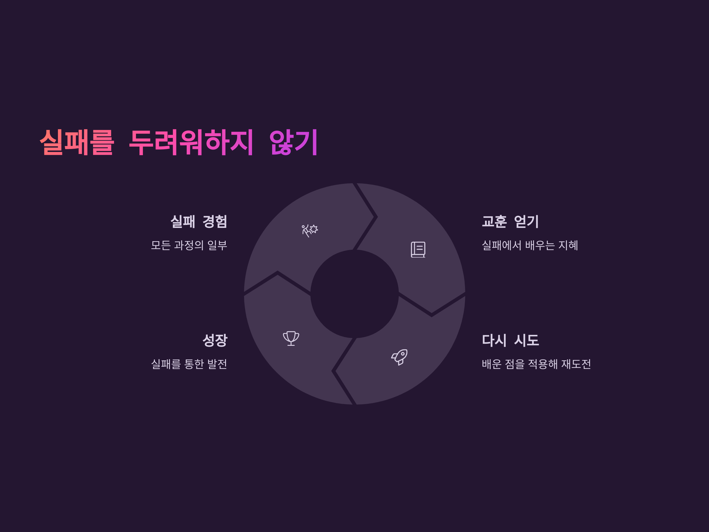 새로운 습관을 만들 때 가장 중요한 점은 실패를 두려워하지 않는 것입니다. 습관을 시작하고 나서 실패하는 순간이 올 수 있지만, 그것을 두려워해서는 안 됩니다. 실패는 학습의 기회이며, 실패를 통해 더 나은 방법을 찾을 수 있습니다.