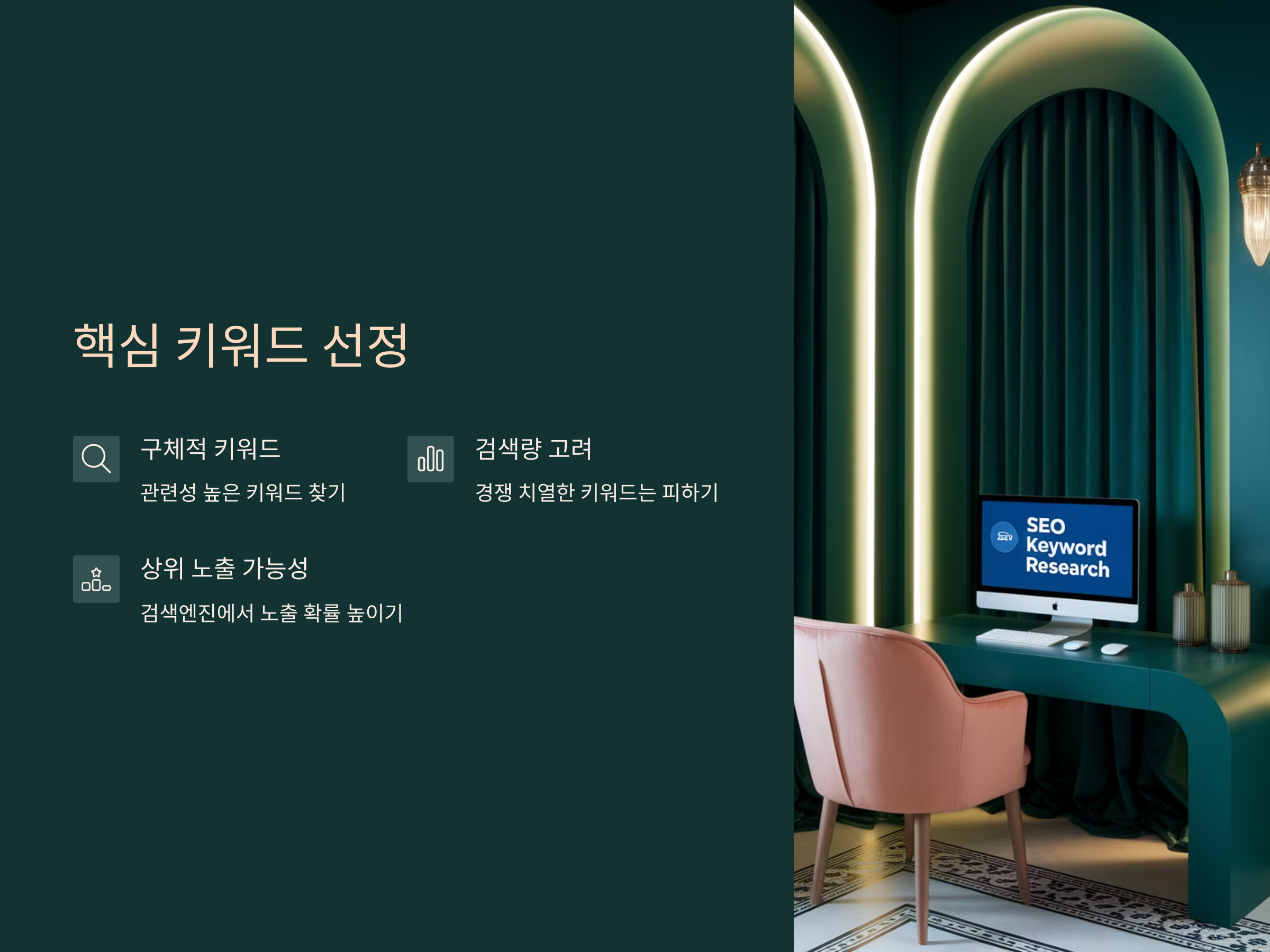 검색엔진 최적화(SEO)에서 가장 중요한 것은 독자들이 자주 검색하는 키워드를 찾는 것입니다. 이를 통해 글의 조회수를 높이고, 구글이나 네이버 같은 검색엔진에서 상위 노출될 가능성이 커집니다.
