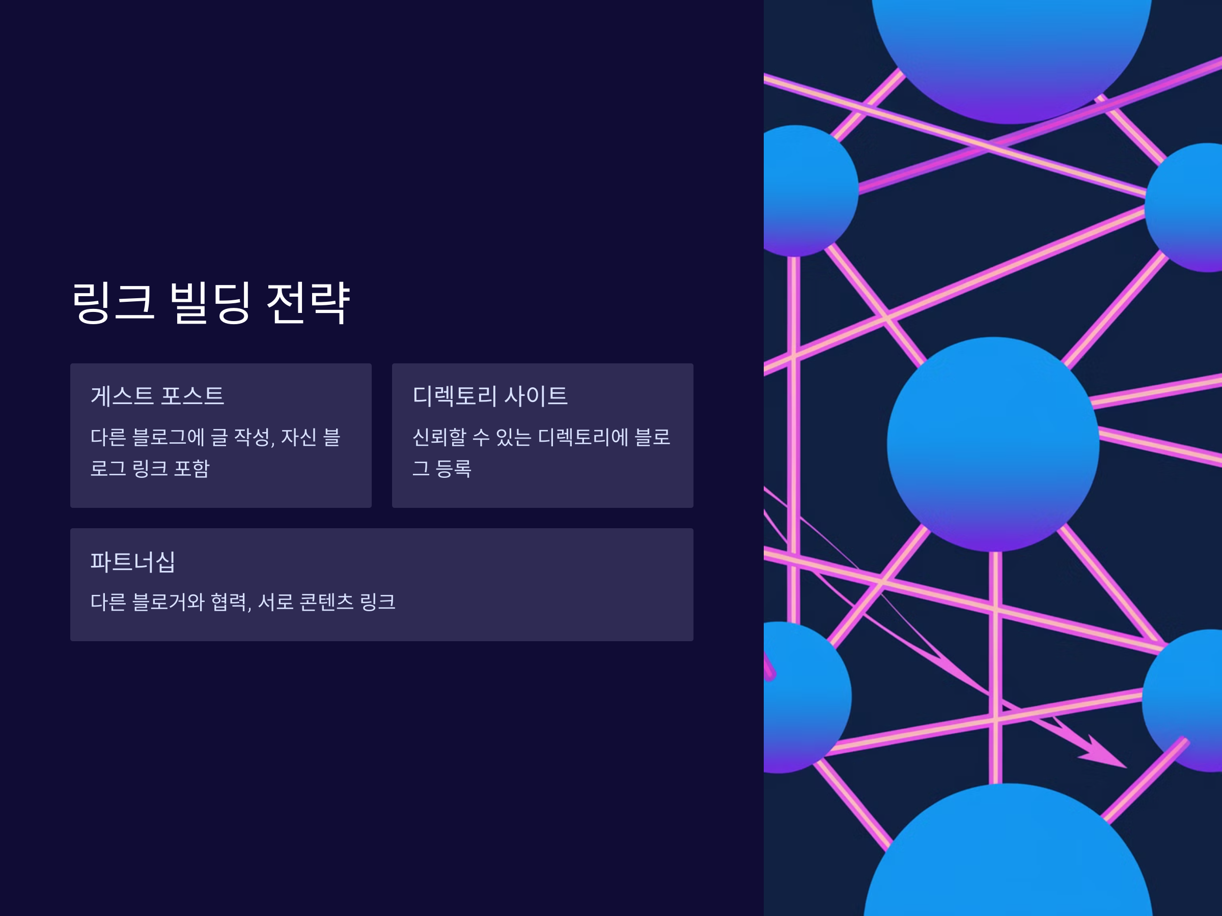 - 파트너십: 다른 블로거나 웹사이트와 파트너십을 맺고 서로의 콘텐츠를 링크해줍니다.