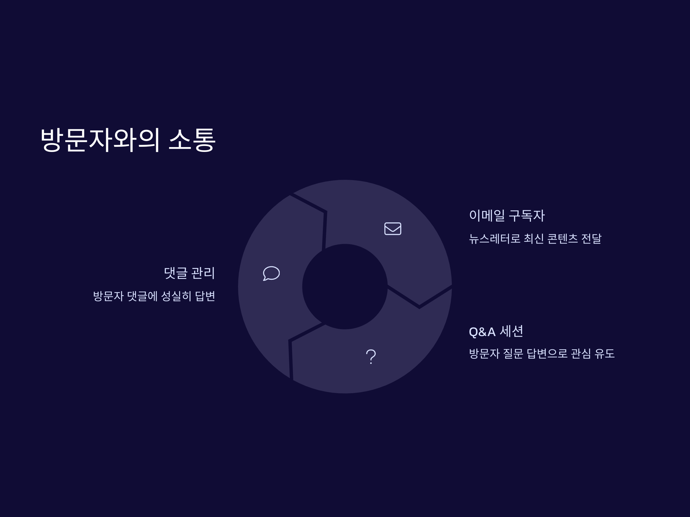 - 이메일 구독자와의 소통: 이메일을 통해 뉴스레터나 최신 콘텐츠를 전달하고 소통합니다.