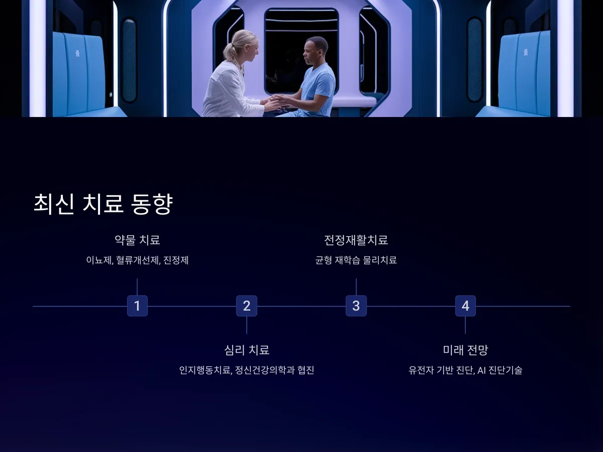 약물로는 이뇨제, 혈류개선제, 진정제 등이 사용되며, 최근에는 전정재활치료라는 물리치료 방식이 주목받고 있습니다. 이는 균형을 다시 학습시켜 일상 복귀를 돕는 것으로, 정기적인 반복 훈련을 통해 효과를 볼 수 있습니다. 앞으로는 유전자 기반 진단이나 AI 진단기술의 도입이 예측되며, 보다 정밀한 개인 맞춤형 치료가 가능할 전망입니다.