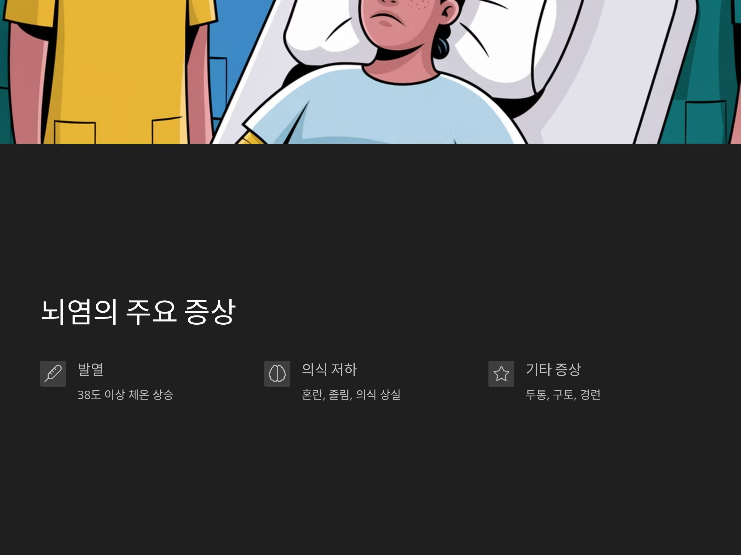 뇌염의 가장 대표적인 증상은 발열과 의식 저하입니다. 발열은 바이러스나 세균 감염으로 인해 면역 반응이 발생하면서 체온이 상승하는 현상으로, 체온이 38도 이상 올라가는 경우가 많습니다. 의식 저하는 뇌의 염증이 뇌의 특정 부분에 영향을 미치면서 발생합니다. 의식 수준이 감소하고, 혼란스러운 상태나 졸림, 심지어 의식을 잃는 경우도 있습니다. 발열과 의식 저하는 뇌염을 의심할 수 있는 중요한 증상으로, 빠른 치료가 필요합니다.