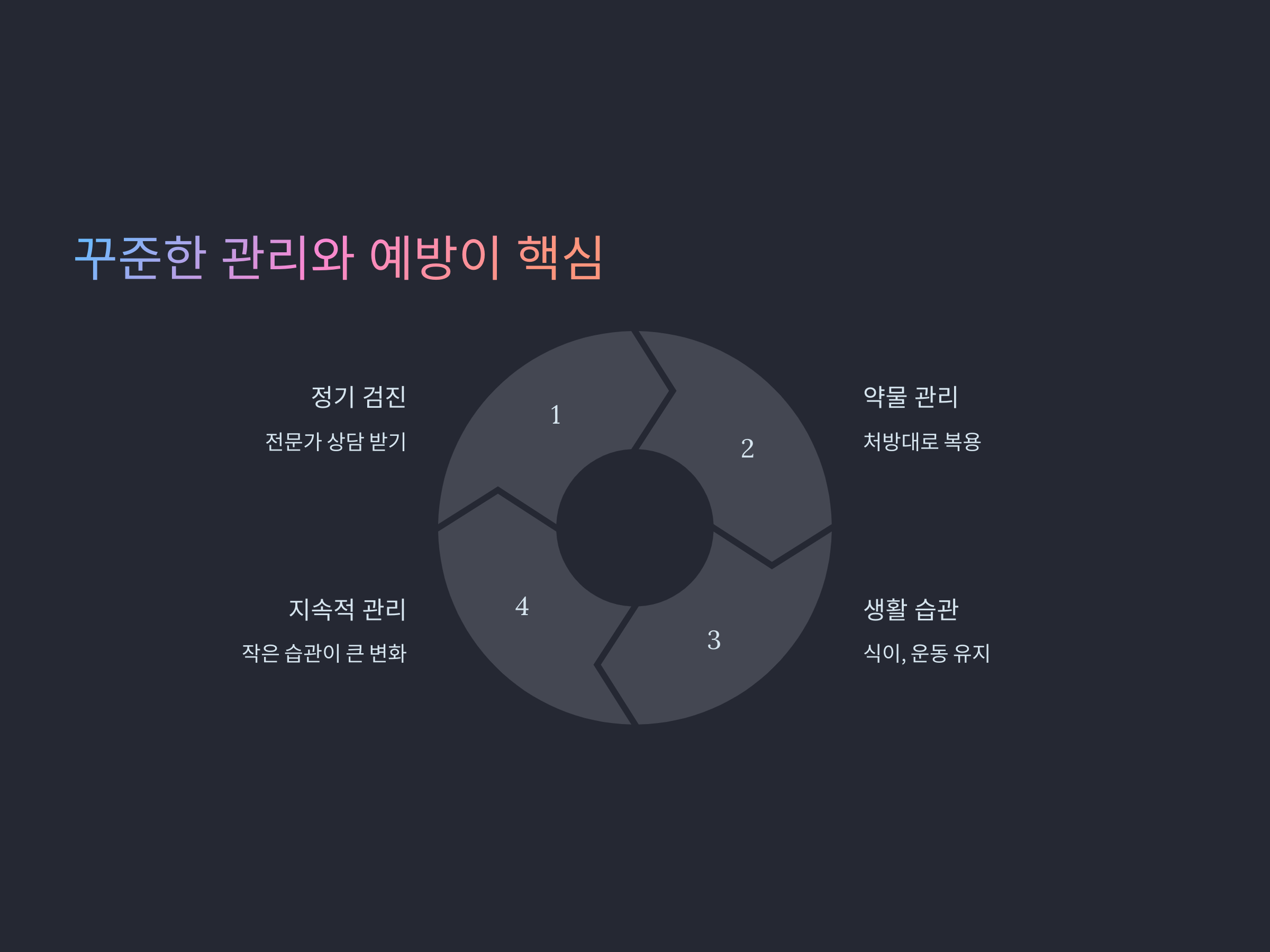 당신의 건강을 지키기 위해 필요한 것은 바로 꾸준한 관리입니다. 하루하루 조금씩 실천하는 것만으로도 뇌졸중 예방에 큰 도움이 될 수 있습니다. 건강을 위한 작은 습관 변화가 큰 변화를 만들 수 있습니다.