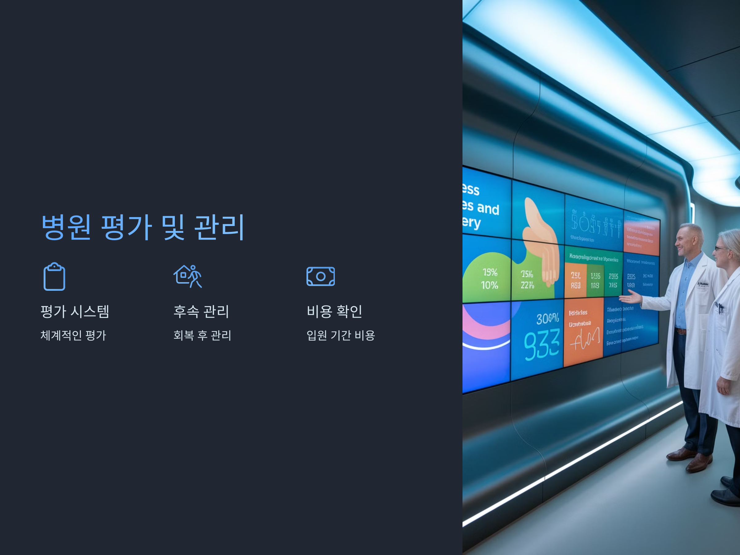 병원의 재활 치료 후속 관리가 중요한 만큼, 병원의 평가 시스템과 회복 후 관리 프로그램이 잘 구축되어 있는 병원을 선택하는 것이 중요합니다. 재활치료가 끝난 후에도, 외래 치료나 추가적인 지원이 필요할 수 있기 때문에 병원에서 제공하는 후속 관리 시스템이 잘 갖춰져 있는지 확인해야 합니다.